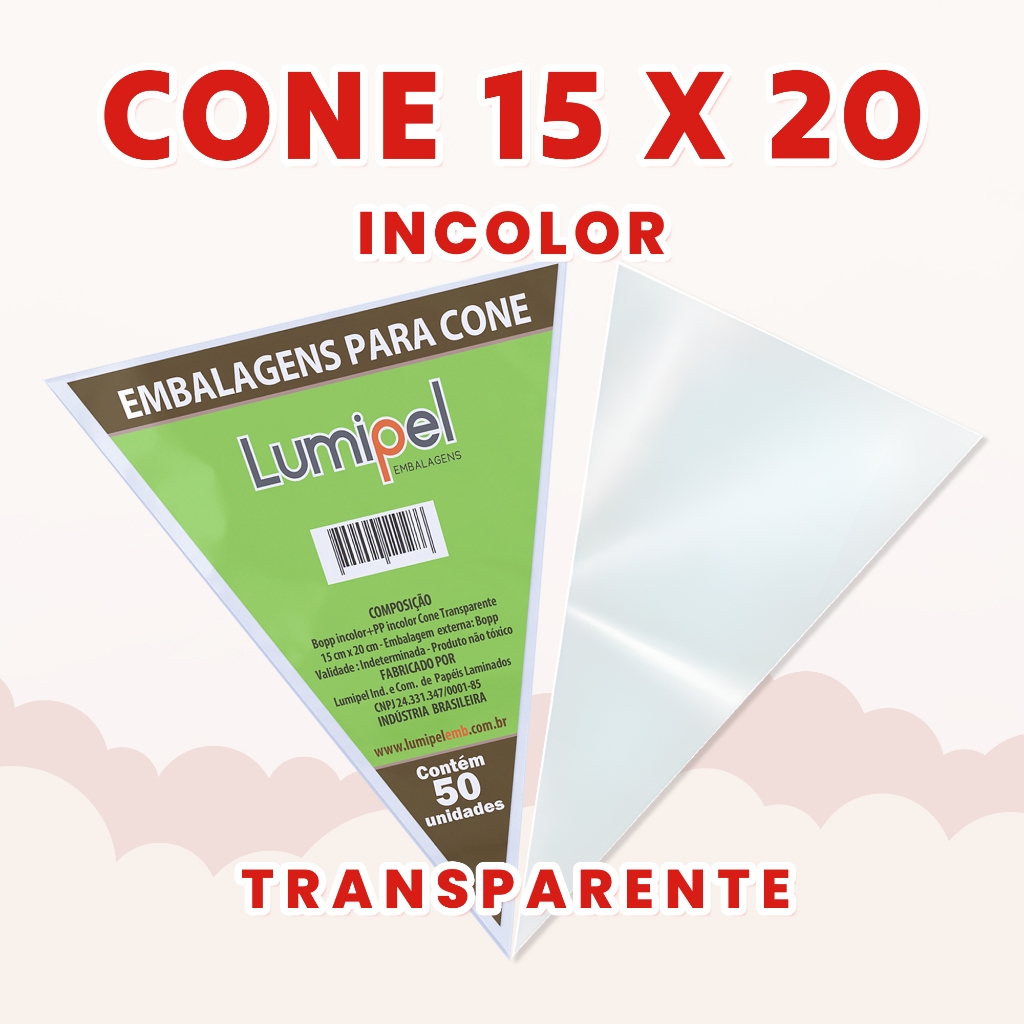 Saco Cone Triangular P/ Doces Pipoca Gourmet Transparente 15x20