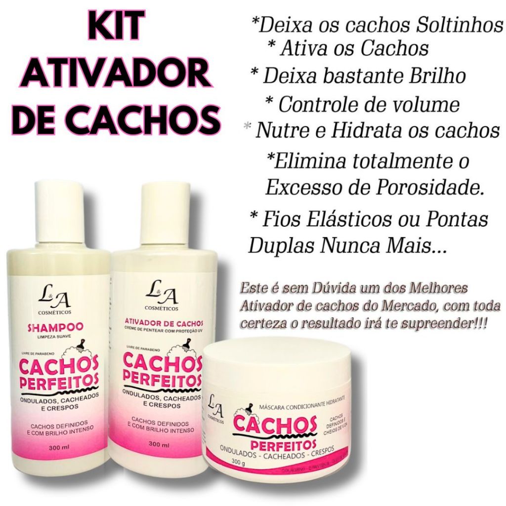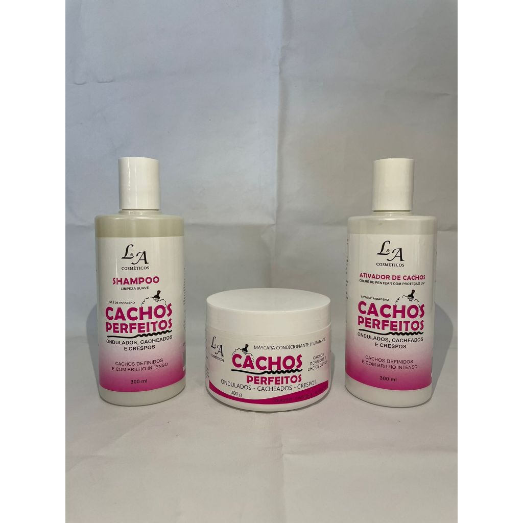 Kit Cachos Perfeitos Shampoo Condicionador e Máscara Hidratante Ativador de cachos 3x300g