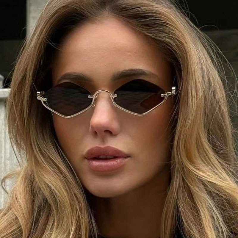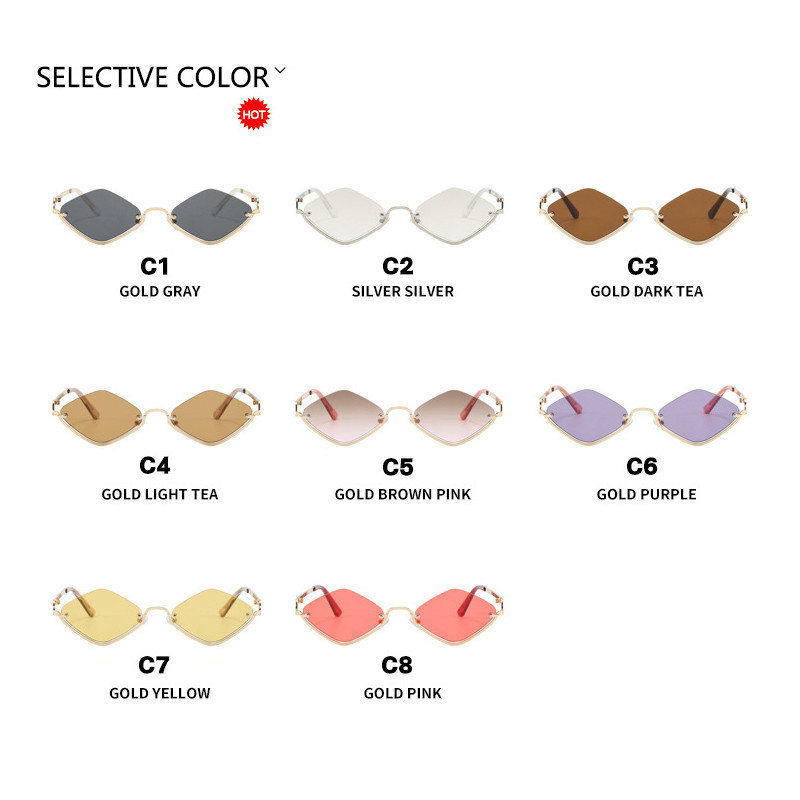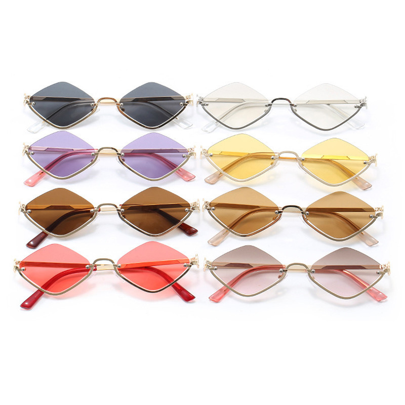 (HENGHA) Óculos De Sol Retrô Punk De Metal Com Meia Armação Para Mulheres , Coloridos Diamante Da Moda Ocidental