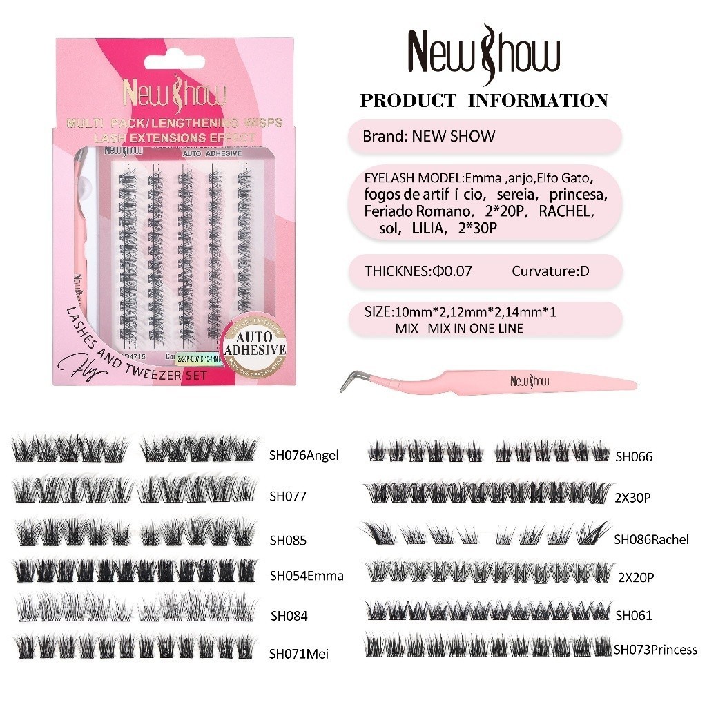 NewShow Cílios Postiços Autoadesivos 12 Modelo(50 cílios) + Pinça – Volume & Alongamento Natural