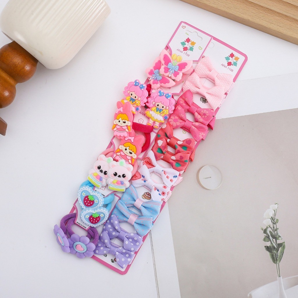 ANA 1108 Kit 24 Pcs de prendedor Infantil elastico+bico de pato desenho -modelo aleatório