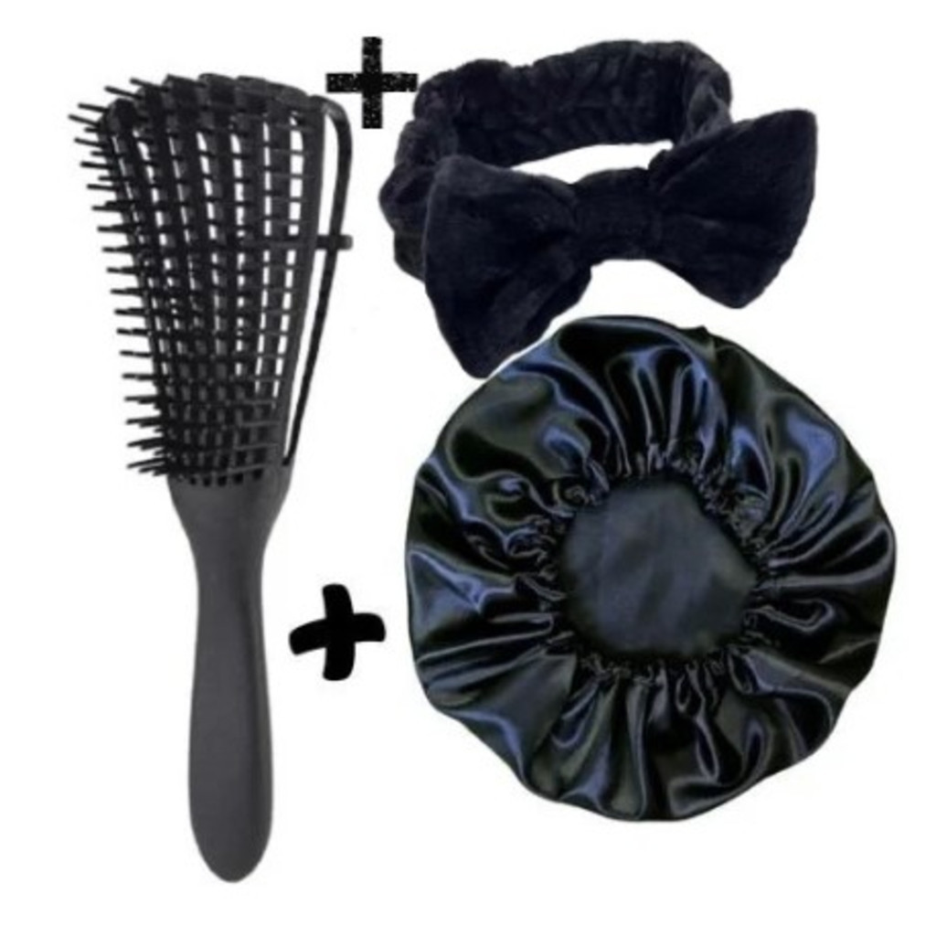 KIT - Touca de cetim + Pente polvo desembaraçador + Faixa de maquiagem-INLIS ANA