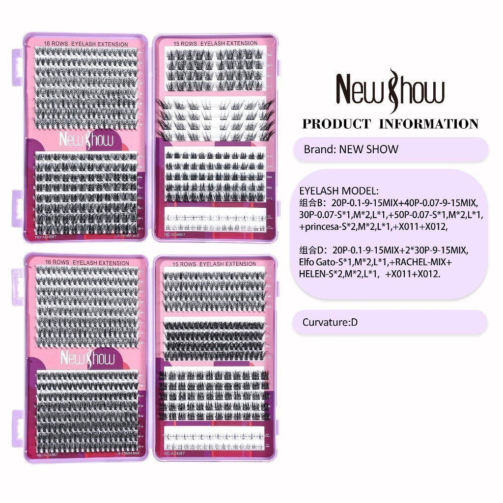 NewShow Conjunto De 31 fileiras de enxerto de cílios - Tufos sem Nó