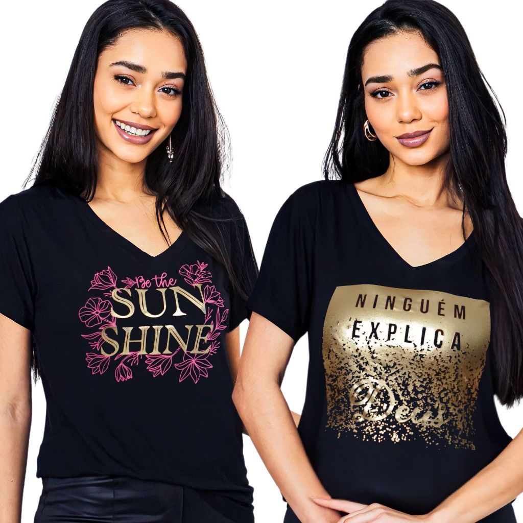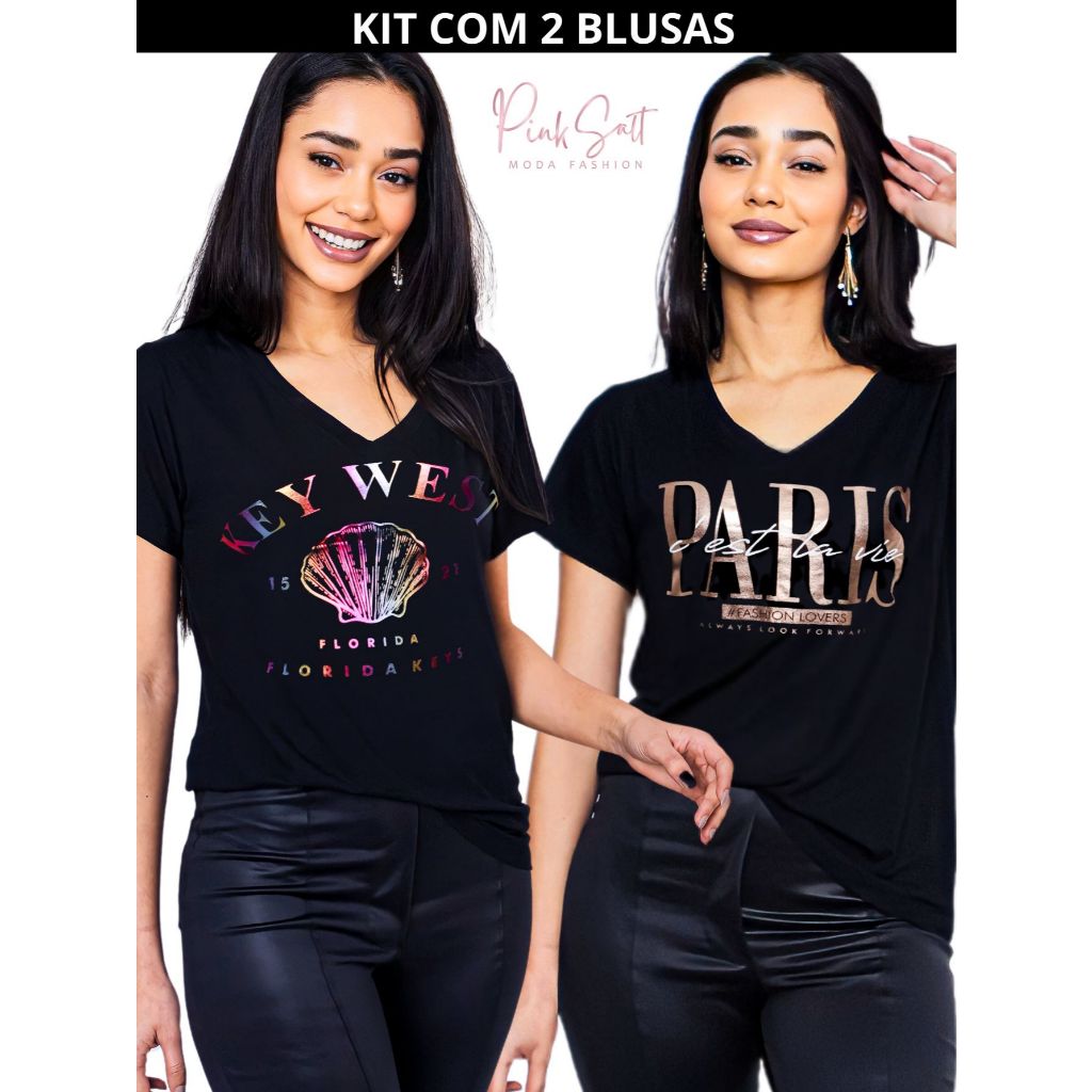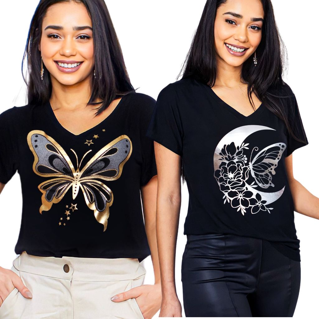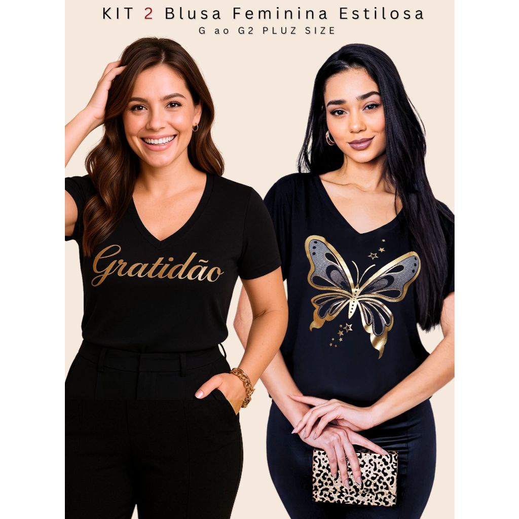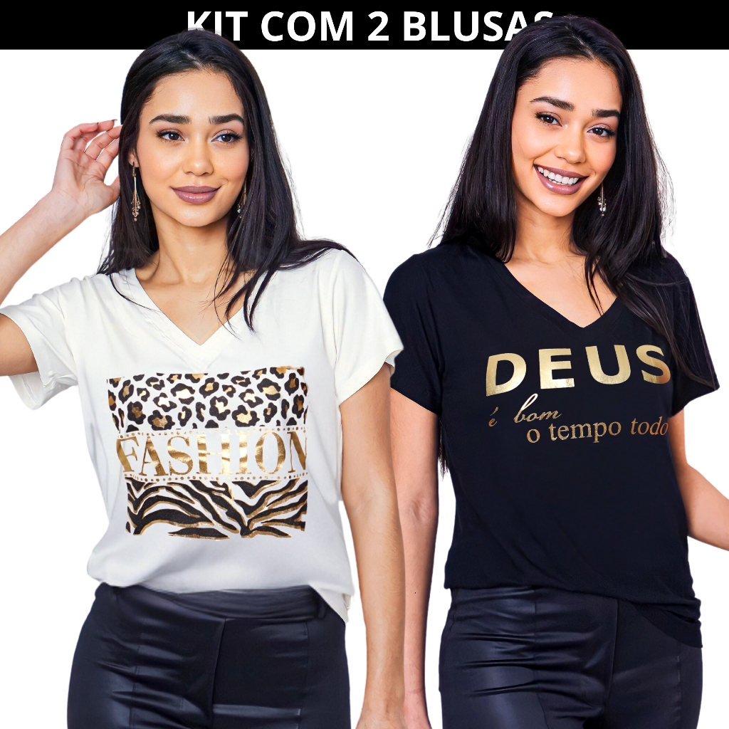 Kit 2 Blusa Feminina Estilosa Camiseta Tamanho M ao G2 Pluz Size Viscolycra Premium T-Shirt Estampa Exclusiva