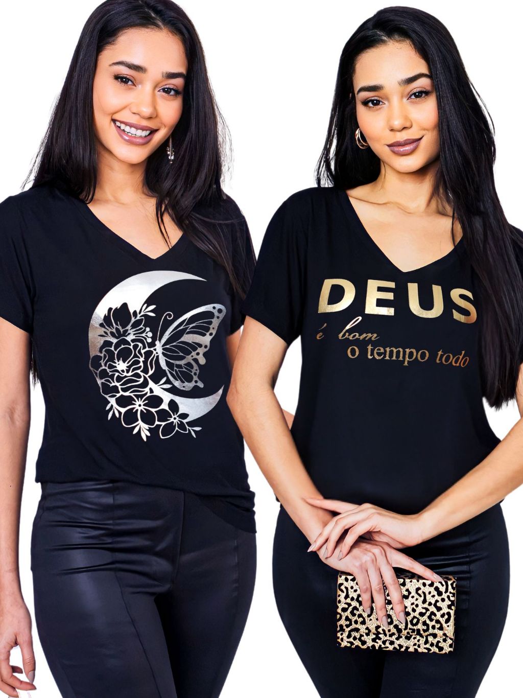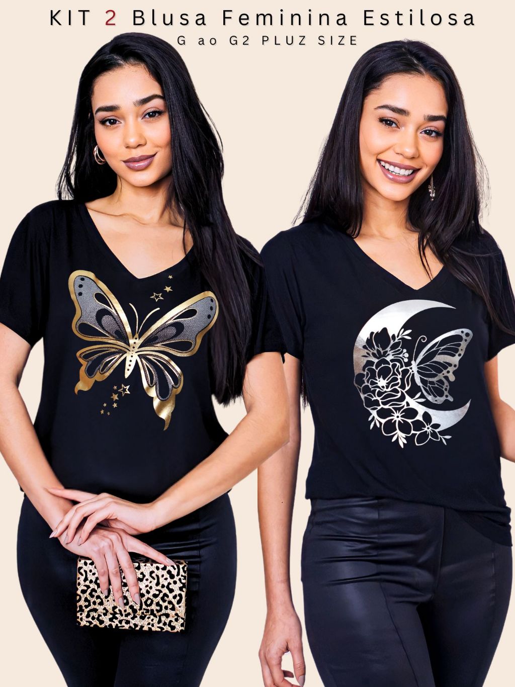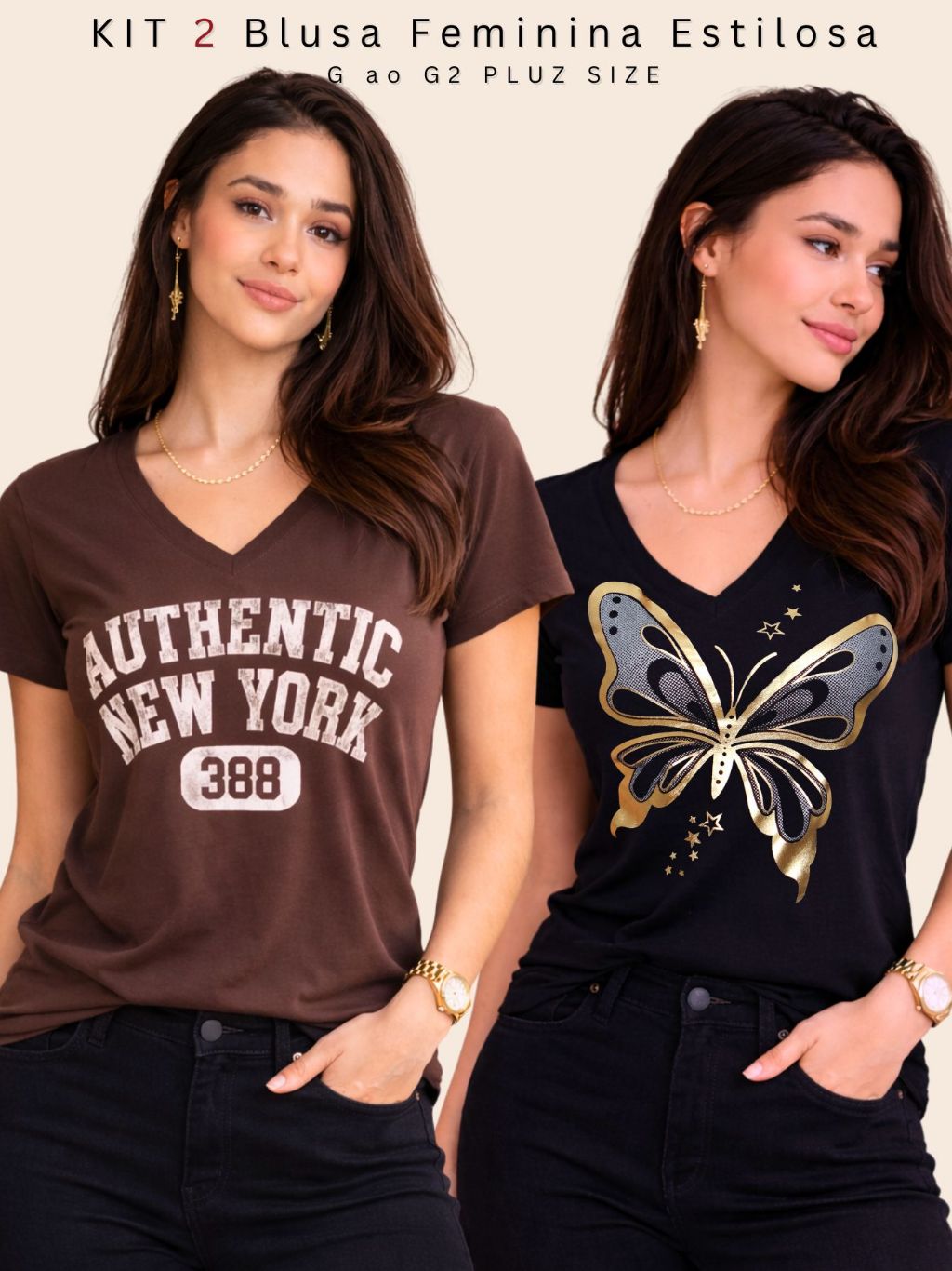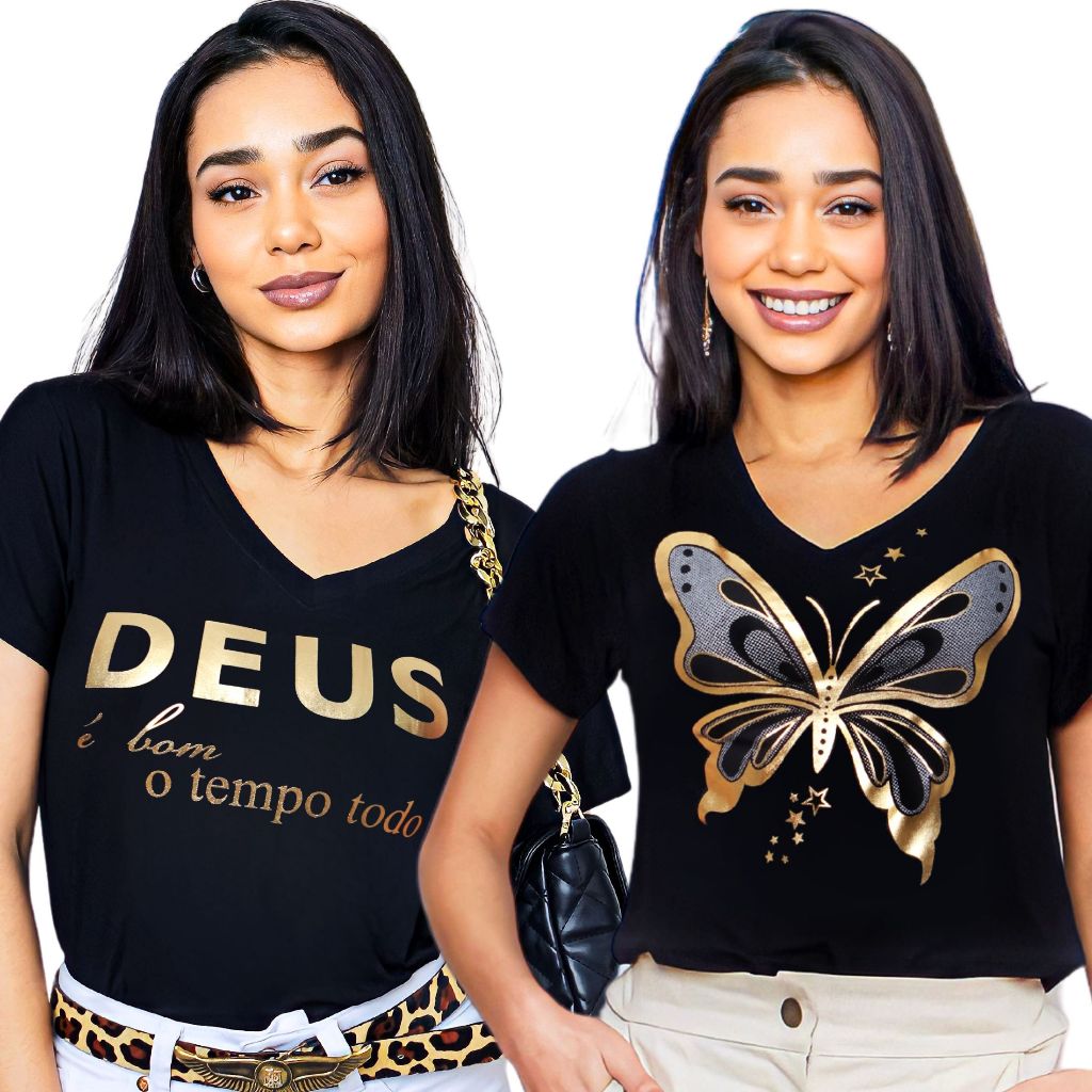 Kit 2 Blusa Feminina Estilosa Camiseta Tamanho M ao G2 Pluz Size Viscolycra Premium T-Shirt Estampa Exclusiva