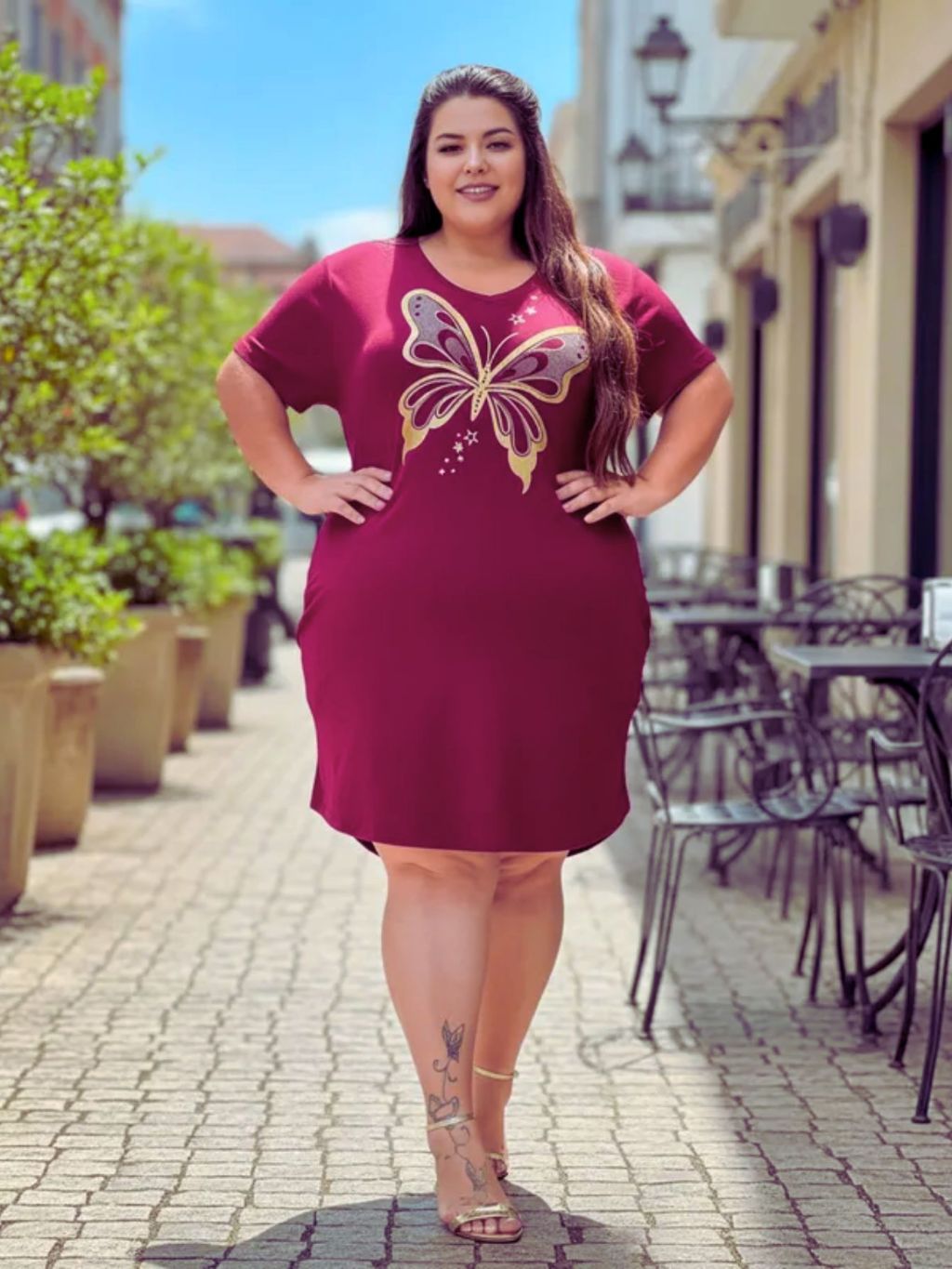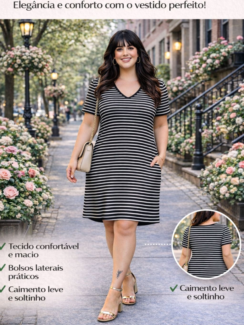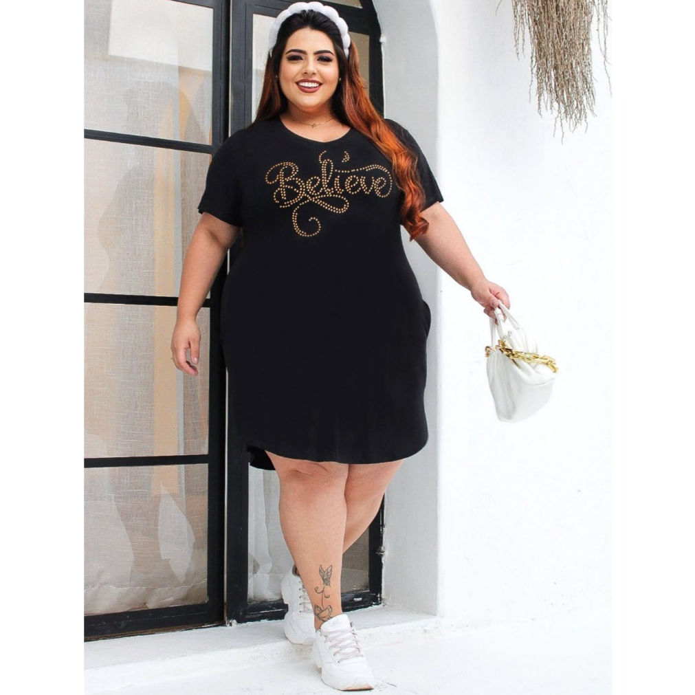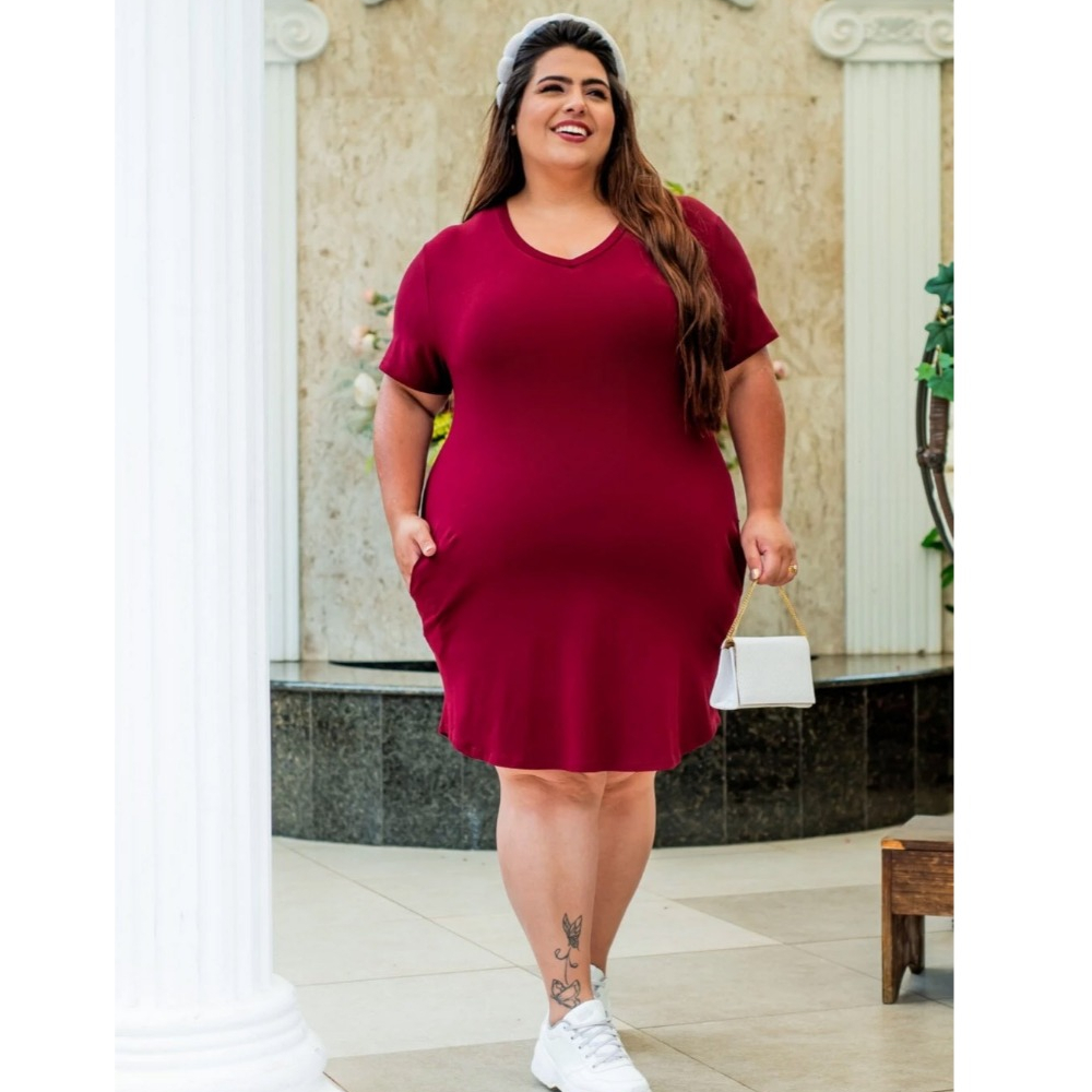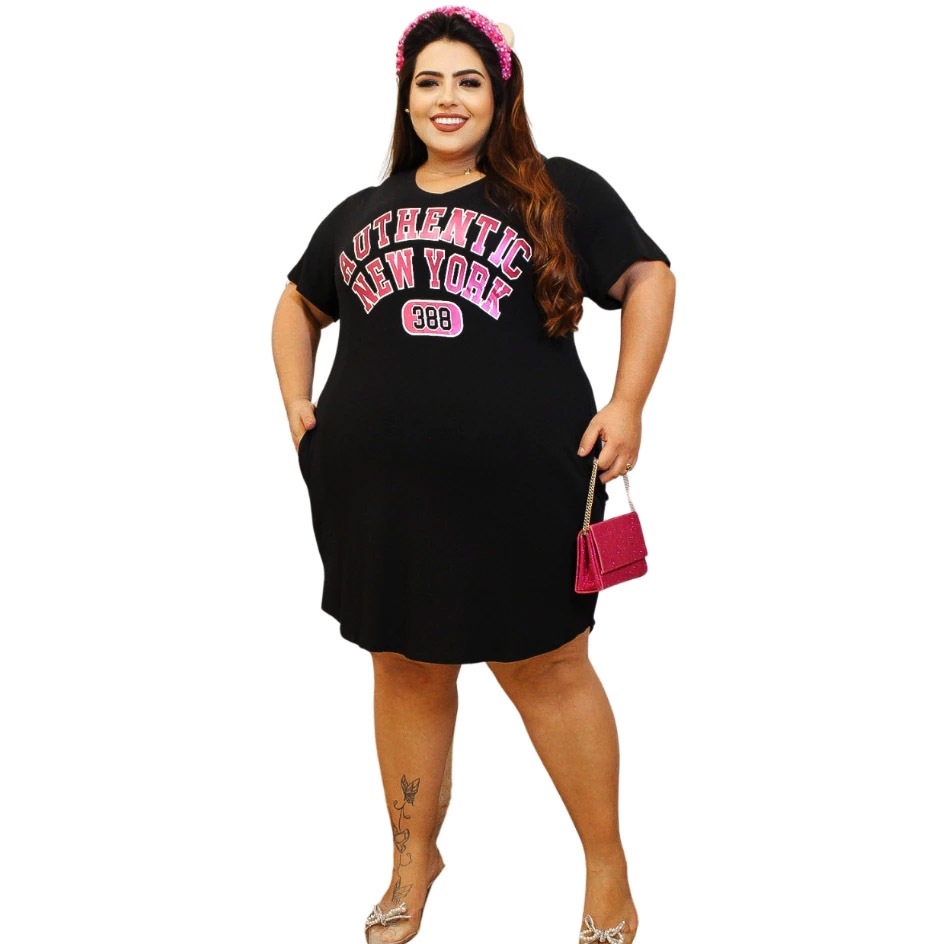 Vestido Feminino Listrado Pluz Size Com Bolso e Estampa Estilosa Macio e Confortável Com Elastano