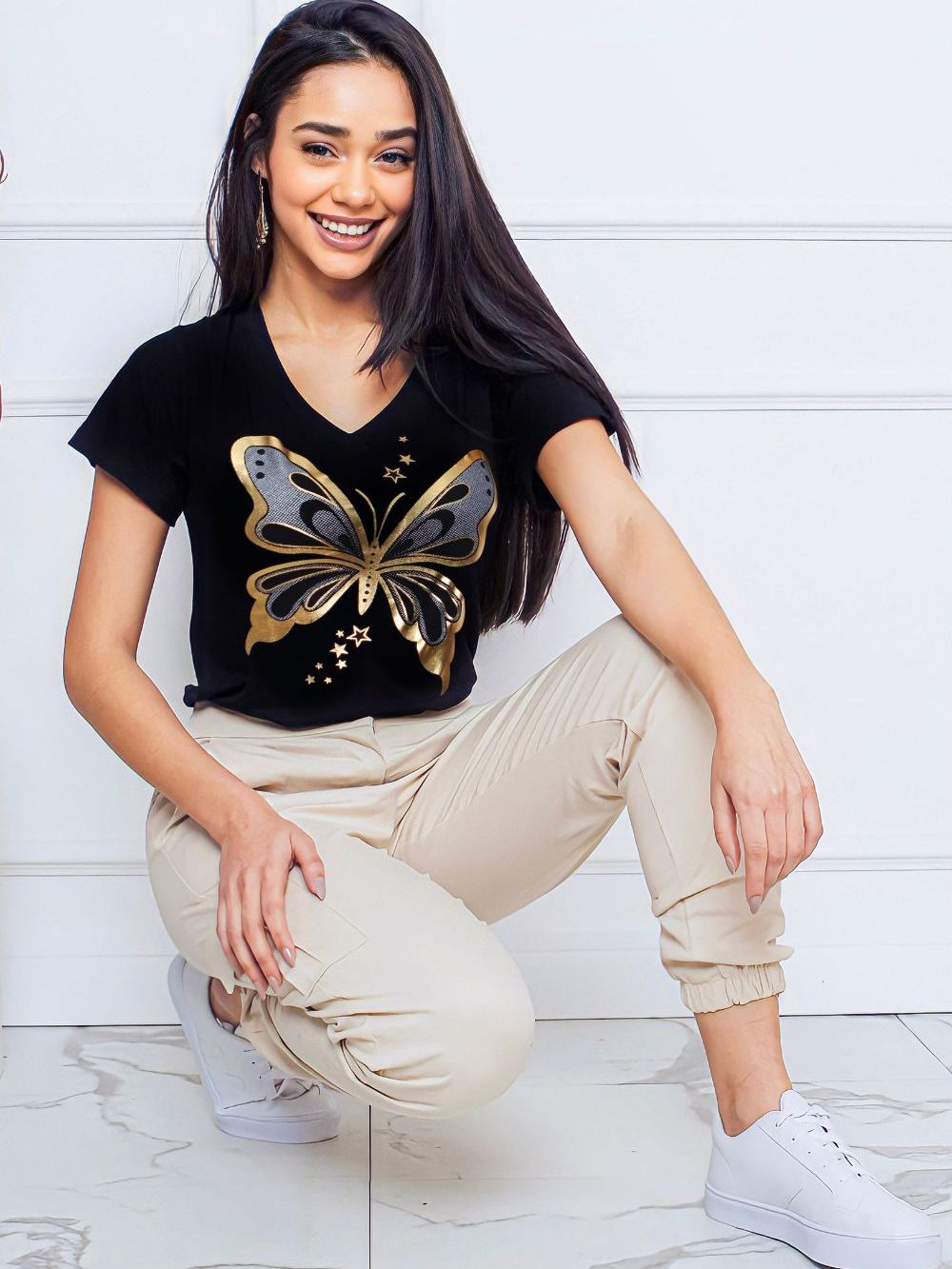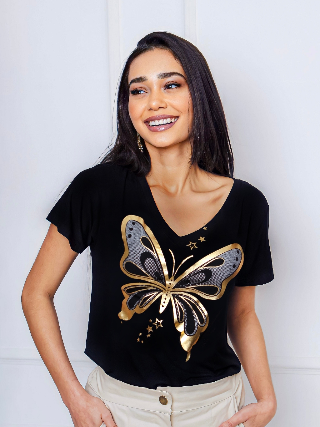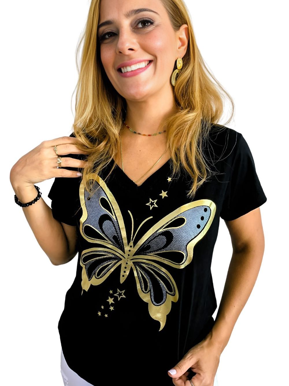 Blusa Feminina Estilosa Pluz size Estampa Borboleta Dourado Fashion Tecido Vicolycra Confortável