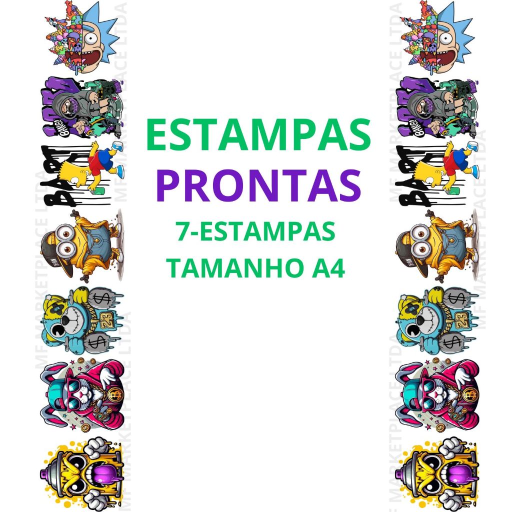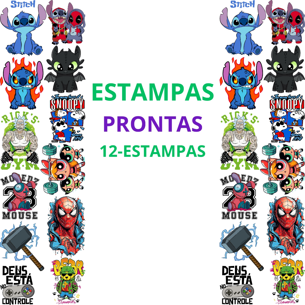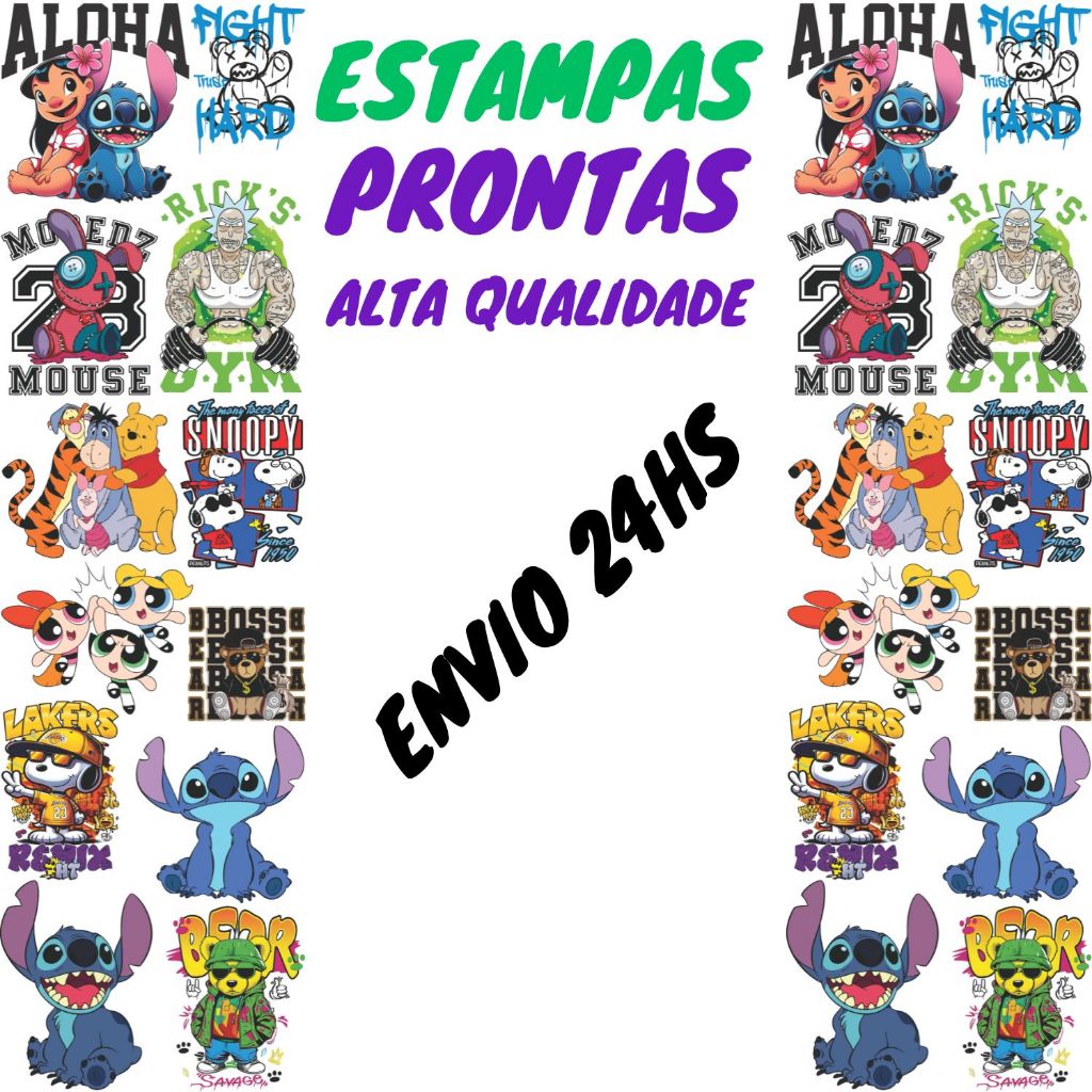 DTF Impressão Pronta Estampa Para Camisetas Desenhos e Personagens Variados Varios Tamanhos 1Metro