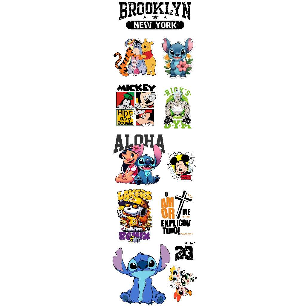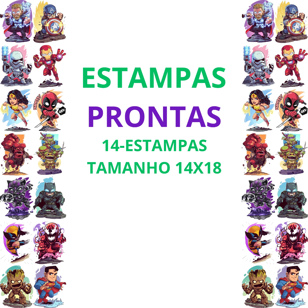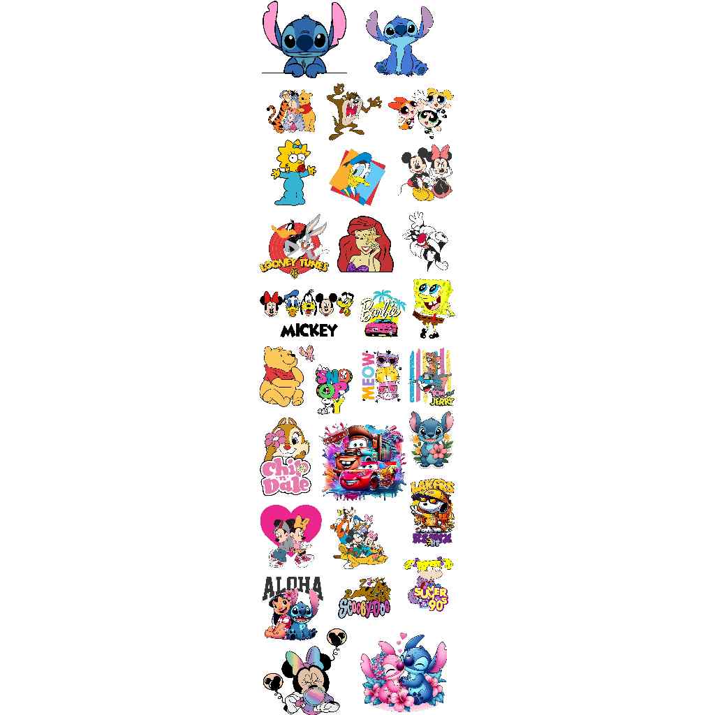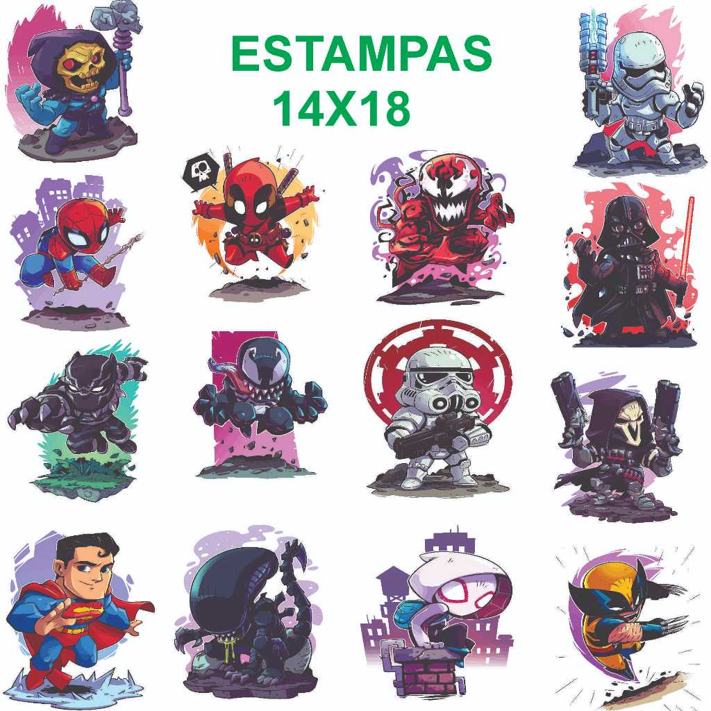 DTF Impressão Pronta Estampa Para Camisetas Desenhos e Personagens Variados Varios Tamanhos 1Metro