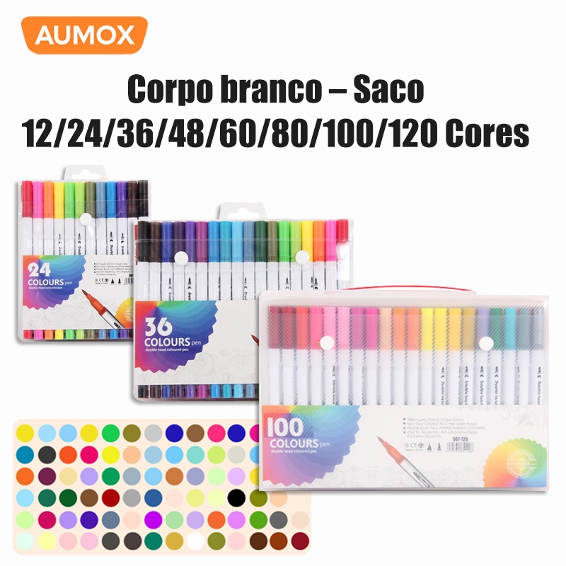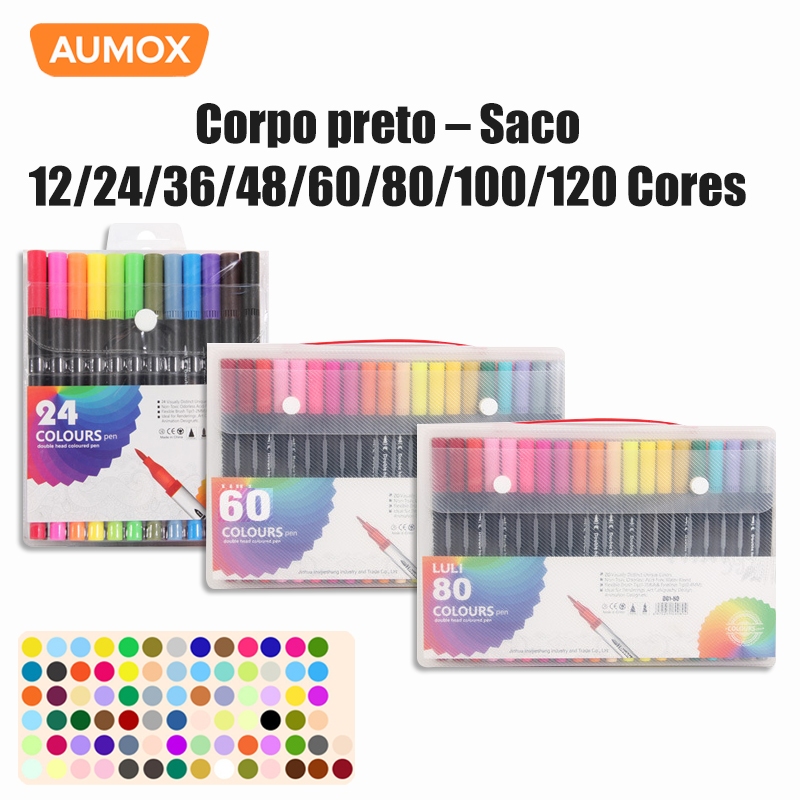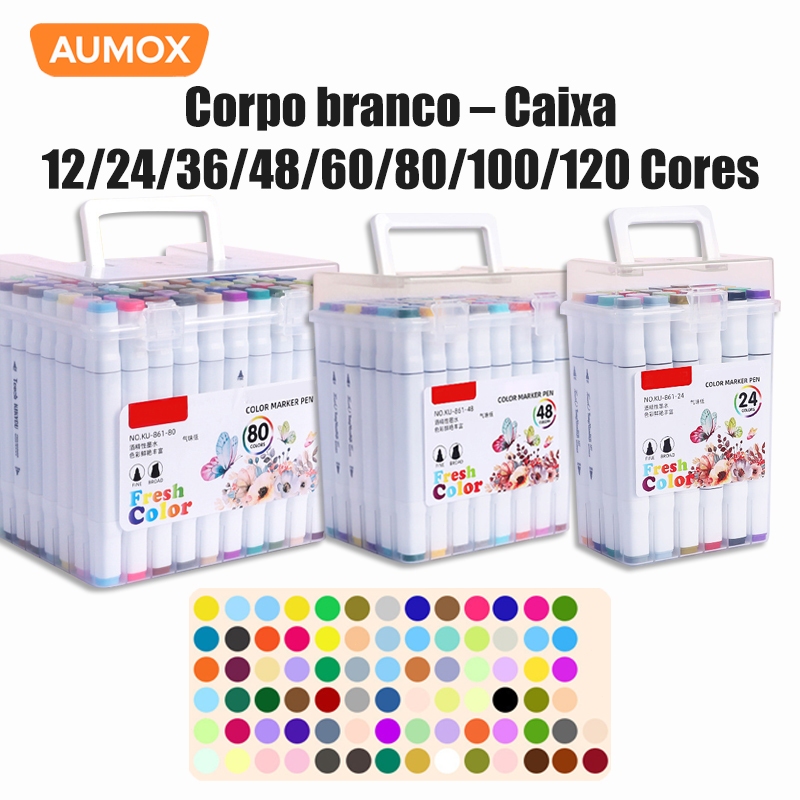 Marcadores Artísticos Dupla Ponta Álcool 12/24/36/48/80/120 Cores Kit Canetas Profissionais Desenho