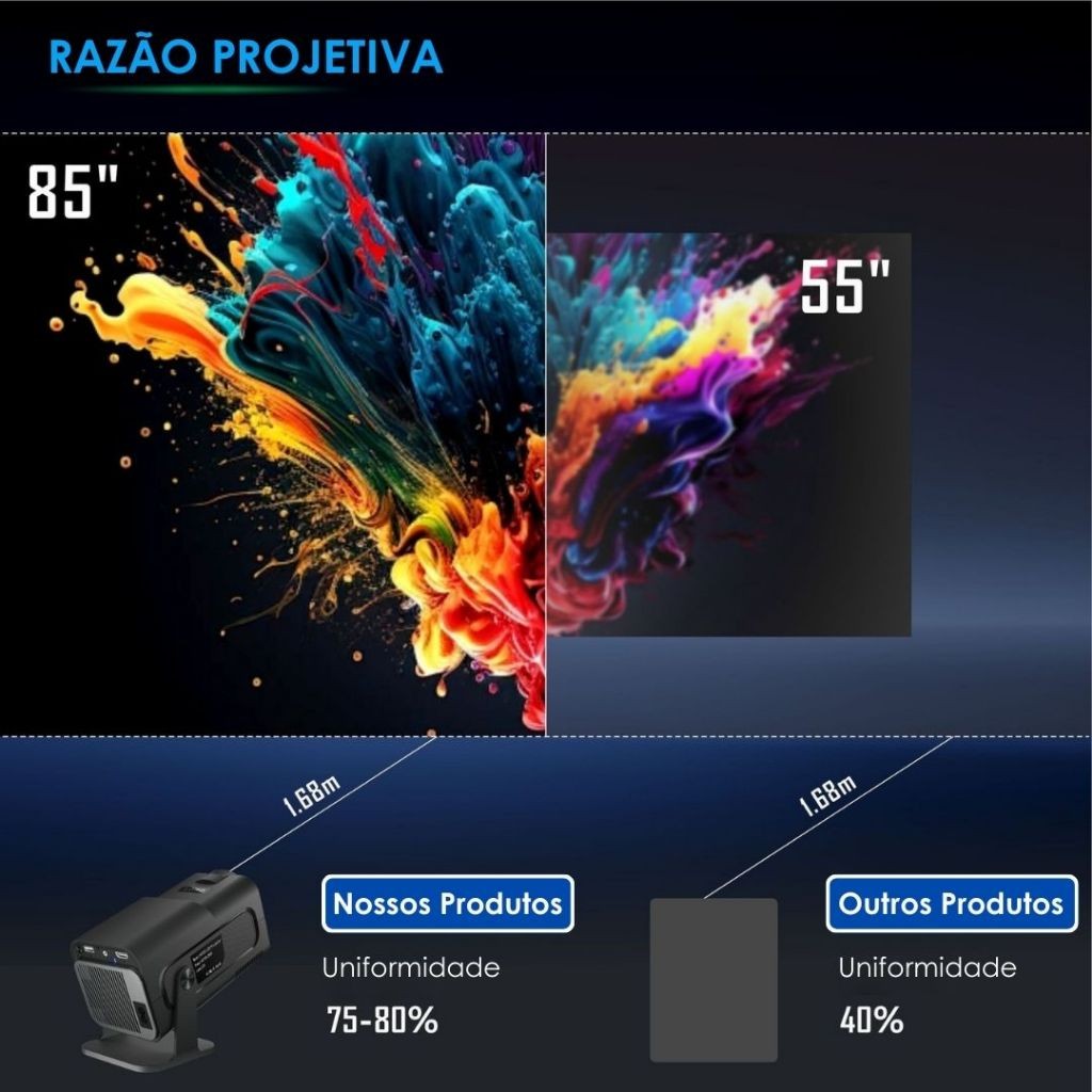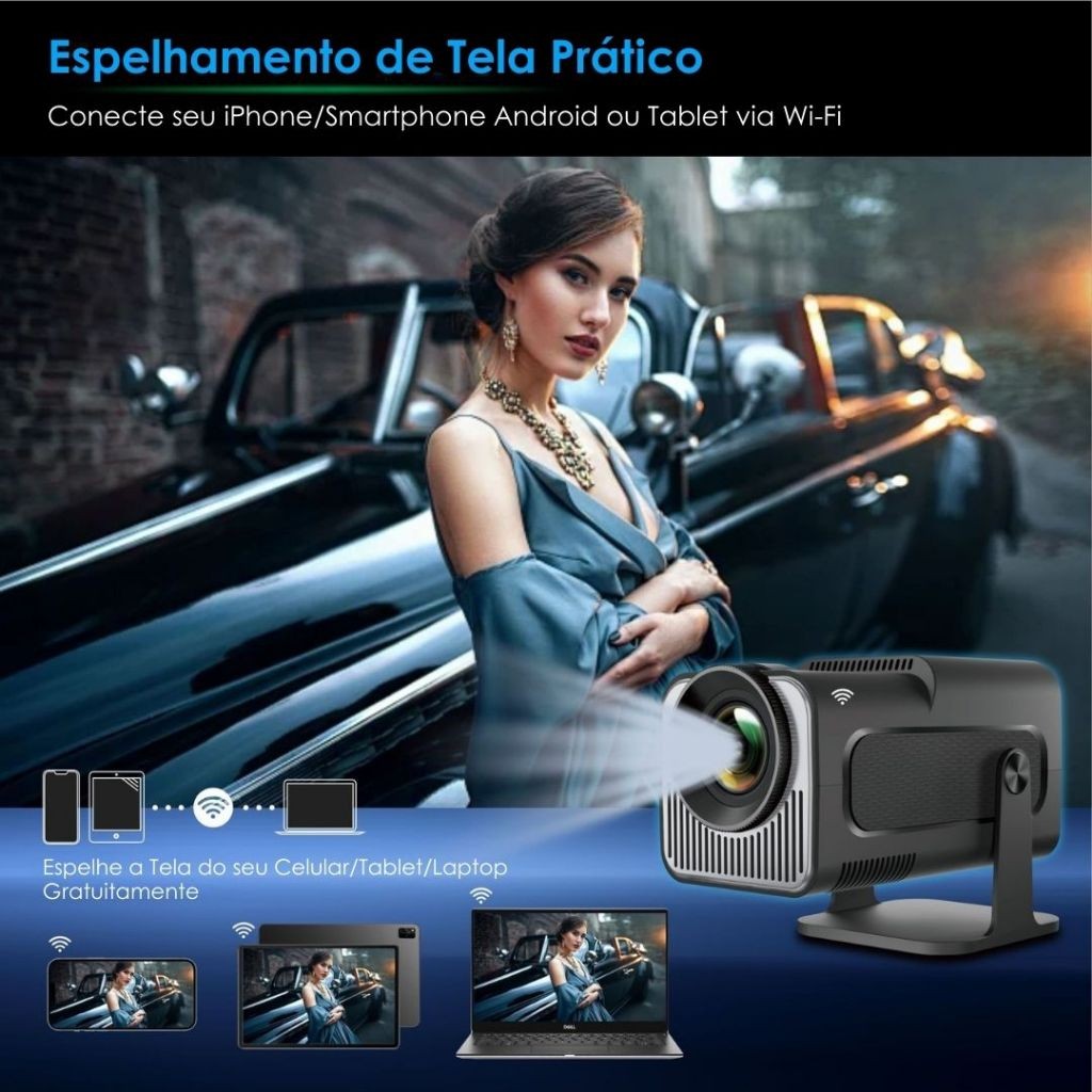 Projetor Smart HY320 Pro Portátil 4K HD Android Wi-Fi 6 Bluetooth 150" Cinema em Casa Bivolt