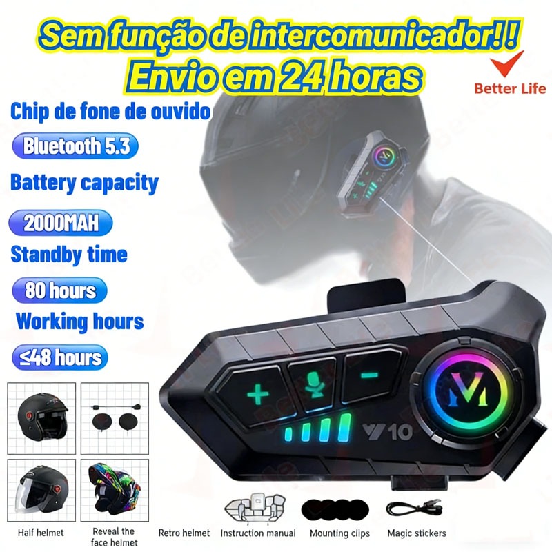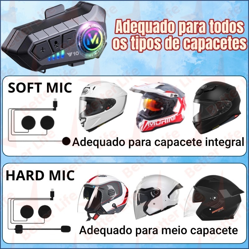 Y10 Motocicleta Sem Fio Bluetooth 5.3 Fone de Ouvido Capacete Kit de Chamadas Mãos Livres À Prova D'Água Intercom-BT