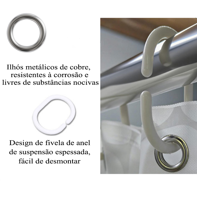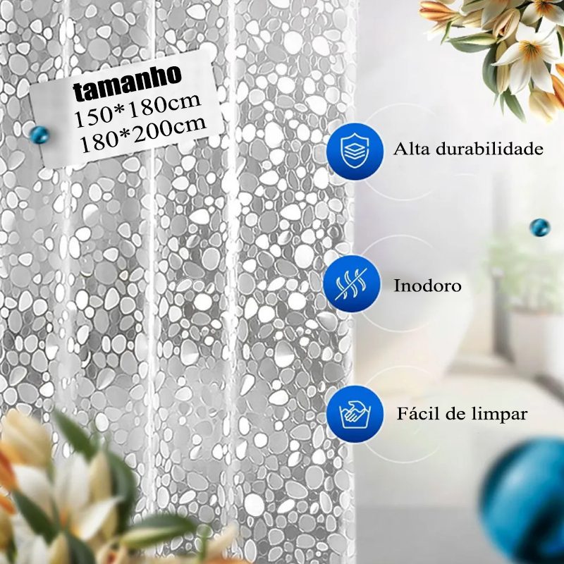 Louis Kit Cortina Box Banheiro Seixos / Cubo 3D + Varão Suporte Extensivel - Com vários formatos disponíveis