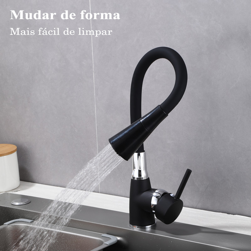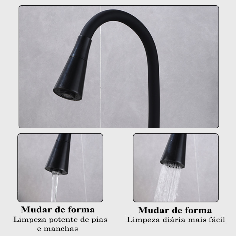 Louis Torneira Preta Flexível com Duplo Jato - Cabo Ajustável Manualmente