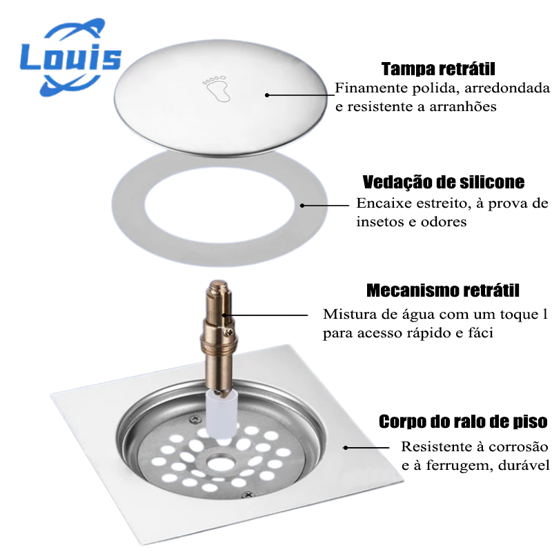 Louis Ralo Click Veda-Cheiro Inteligente 10x10 cm - 15x15 cm Quadrado Inox para Banheiro
