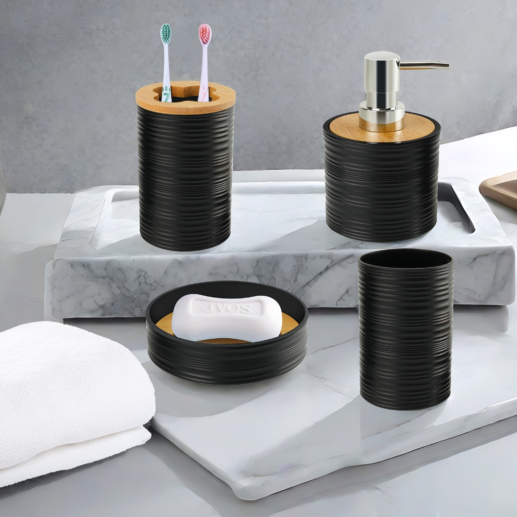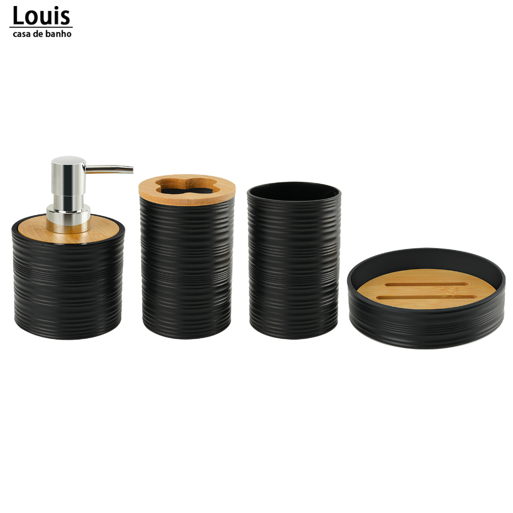 Louis Kit 4 Peças de Banheiro Preto, Porta Sabonete Líquido, Saboneteira e Porta Escova para Organização