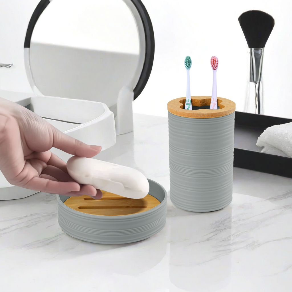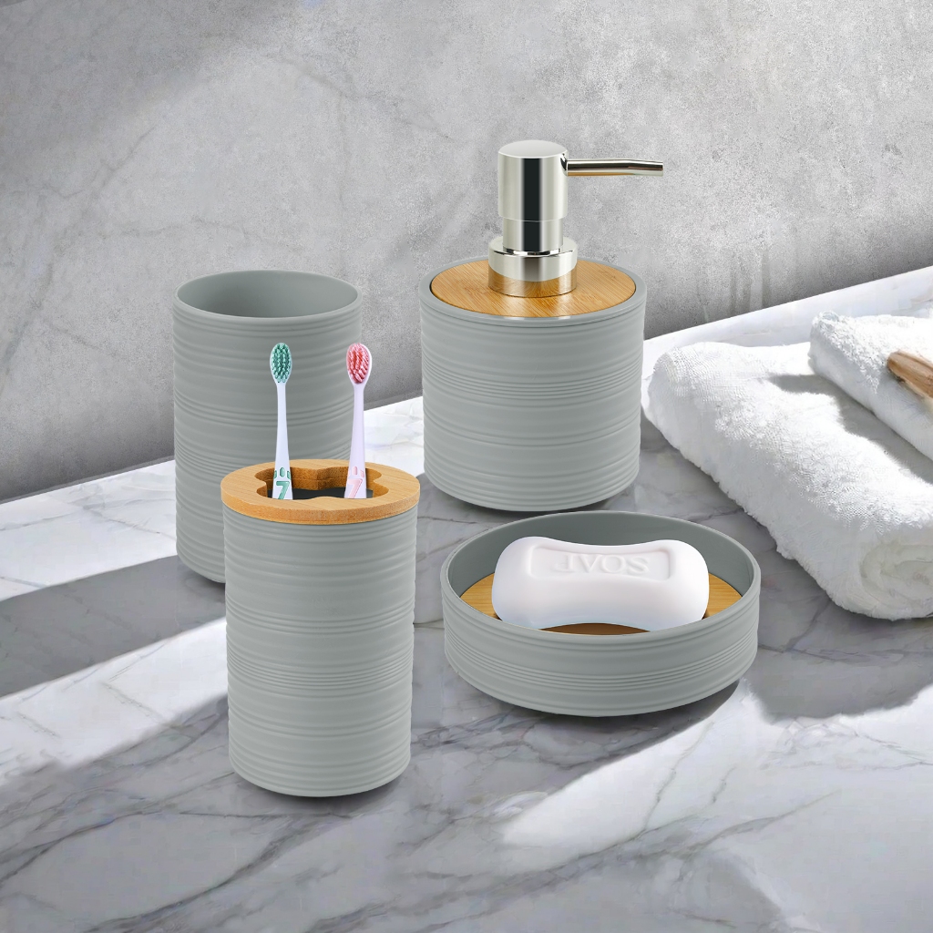 Louis Kit 4 Peças De Banheiro Porta Sabonete Líquido/Saboneteira/Porta Escova Cinza