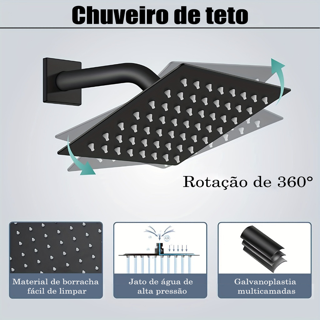 Louis Ducha com Filtragem Iônica: Chuveiro Inox Quadrado para Aquecedor Solar e a Gás