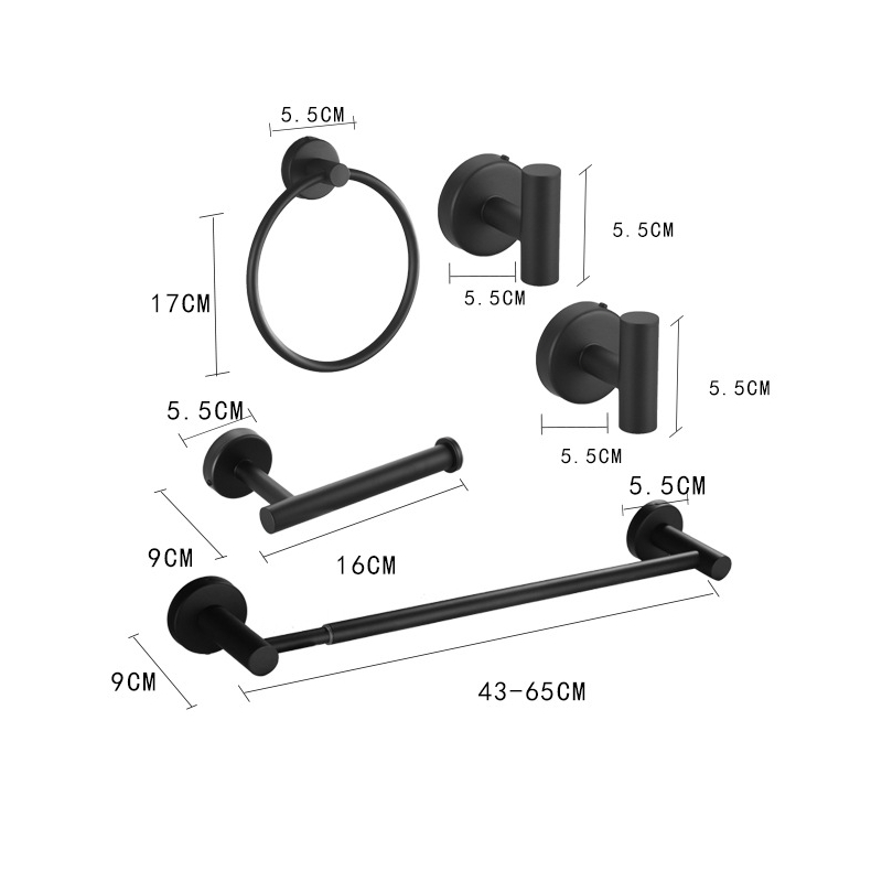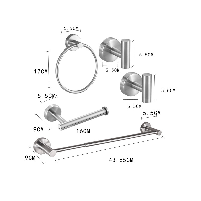 Louis Toalheiro de Banheiro Ajustável Inox 42-65cm - Kit 5 Acessórios Completo