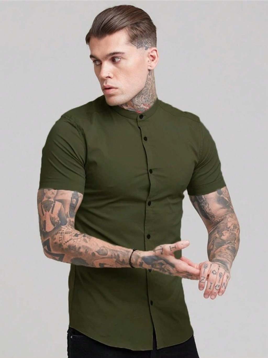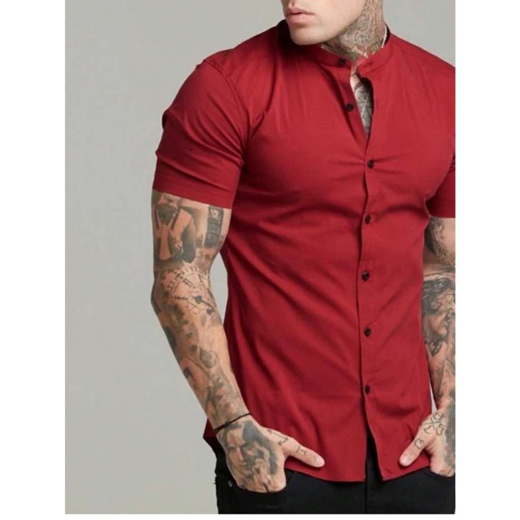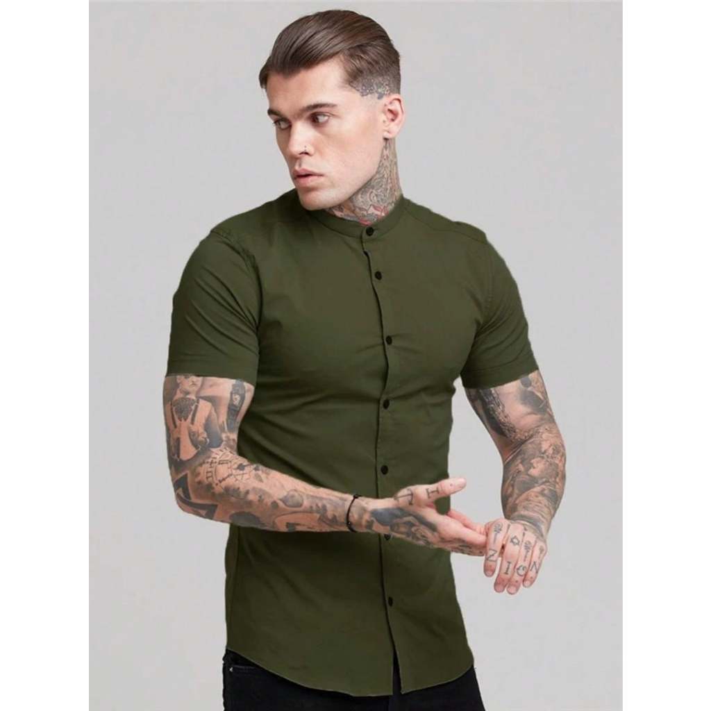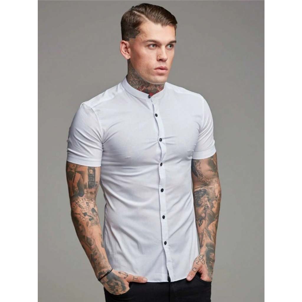 Camisa Social Masculina Gola Padre de Luxo Com Manga Curta Slim Fit Viscose Tecido Premium