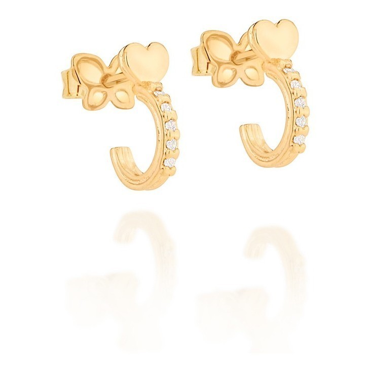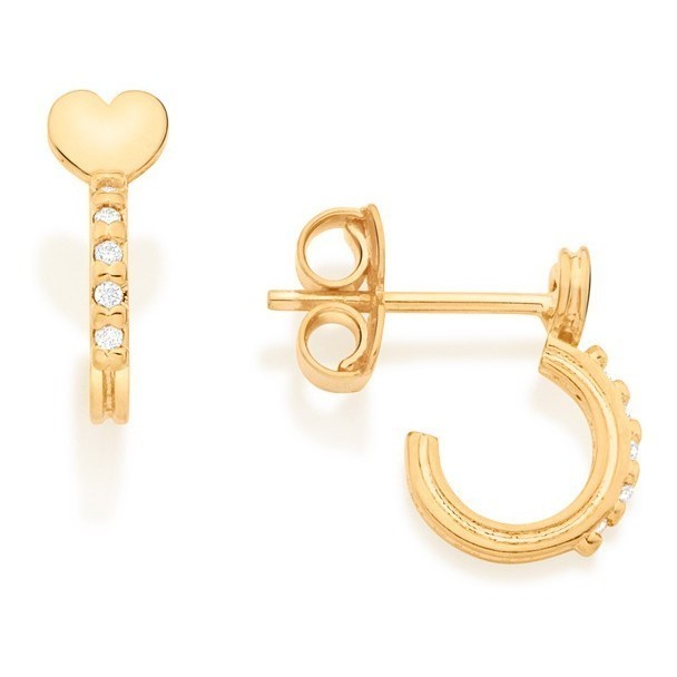 Brinco Meia Argola Coração, Com Zircônias Rommanel 526446