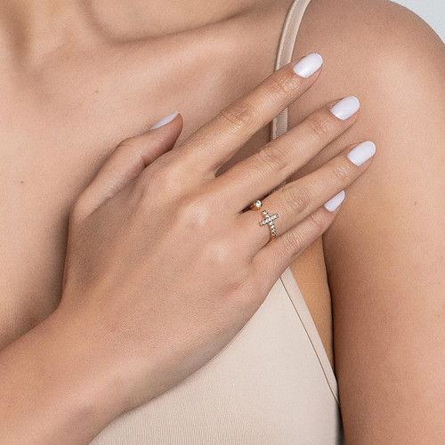 Anel Ajustável Cruz Com Zircônias Rommanel 513262