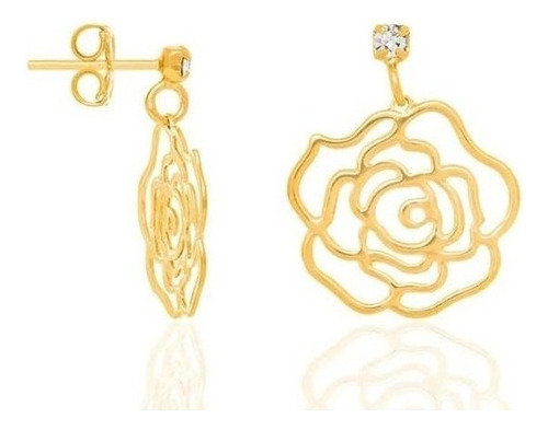 Brinco Base Cristal Com Rosa Vazada. Rommanel 523542 5235420006