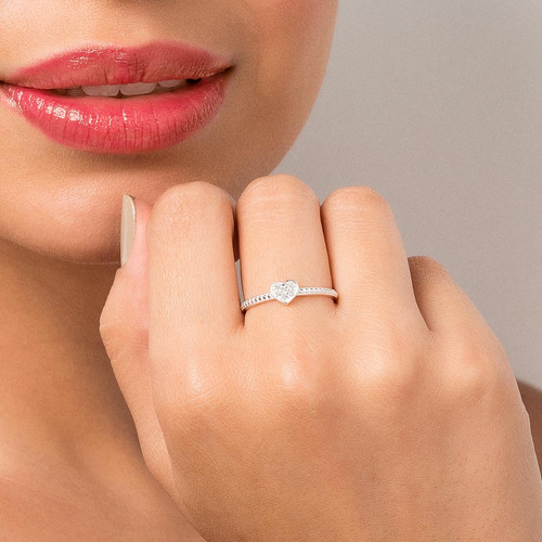 Anel Skinny Com Coração Cravejado Por 6 Zi 810247 810247