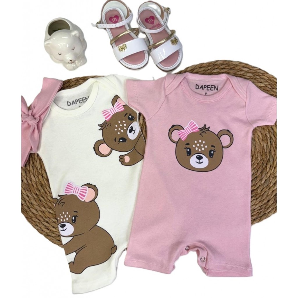 Kit Macacão Bebê Menino Suedine Trio de Ursinhos