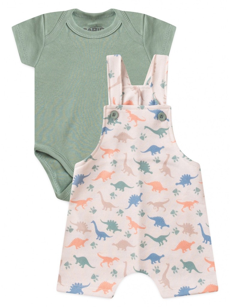 Conjunto Jardineira Bebê Menino Suedine Sublimado