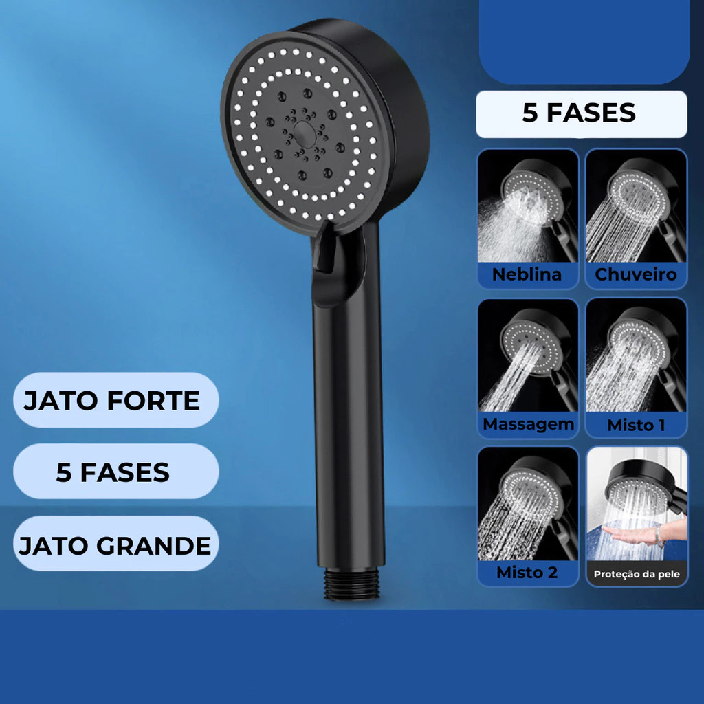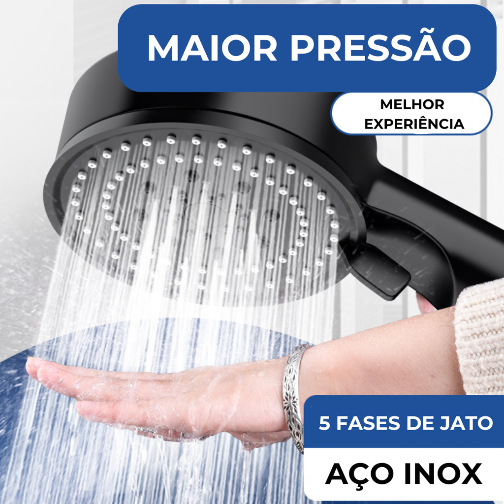 Ducha Chuveiro AÇO INOX Lavatório De Alta Pressão Com 5 Modos De Jato Preta 9 Cm Diametro