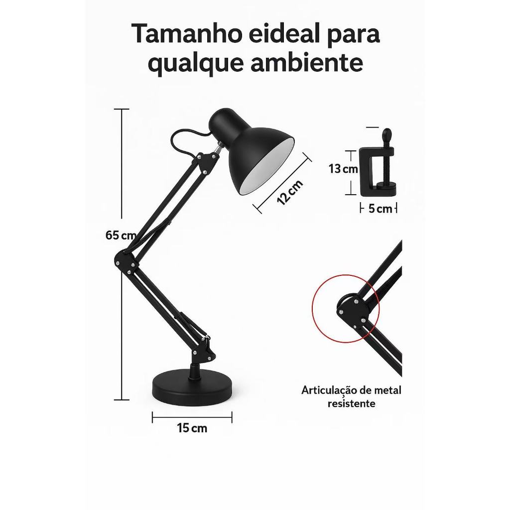 Luminária De Mesa Articulável Abajur Articulado Dobrável Para Escritório Cabeceira Salão De Beleza