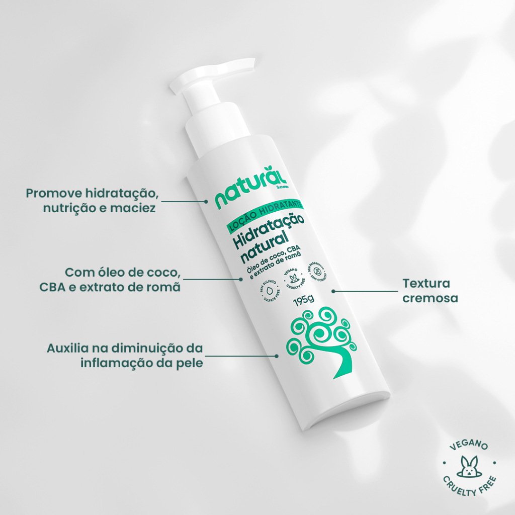 Loção Hidratante Orgânico Natural com Óleo de Coco, CBA e Extrato de Romã 195g