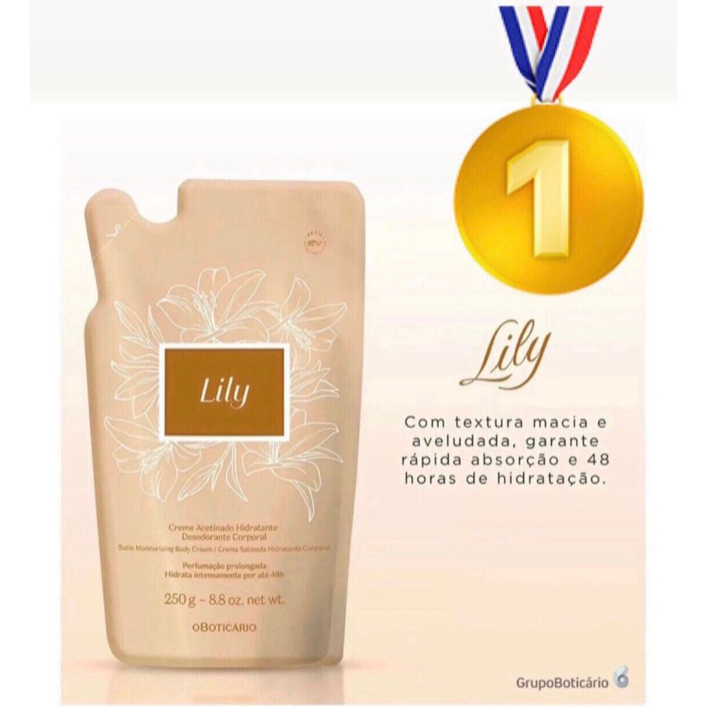 KIT lili creme e perfume 350ml acetinado corpo e mãos hidratante lily lulli