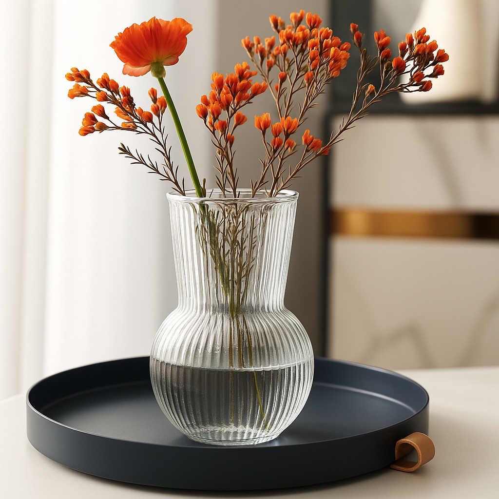 Kit 2 Vaso Decorativo de Vidro Arredondado 17cm Transparente Sala Mesa Flores