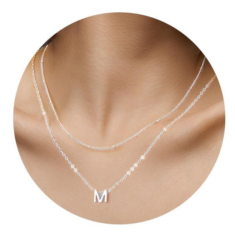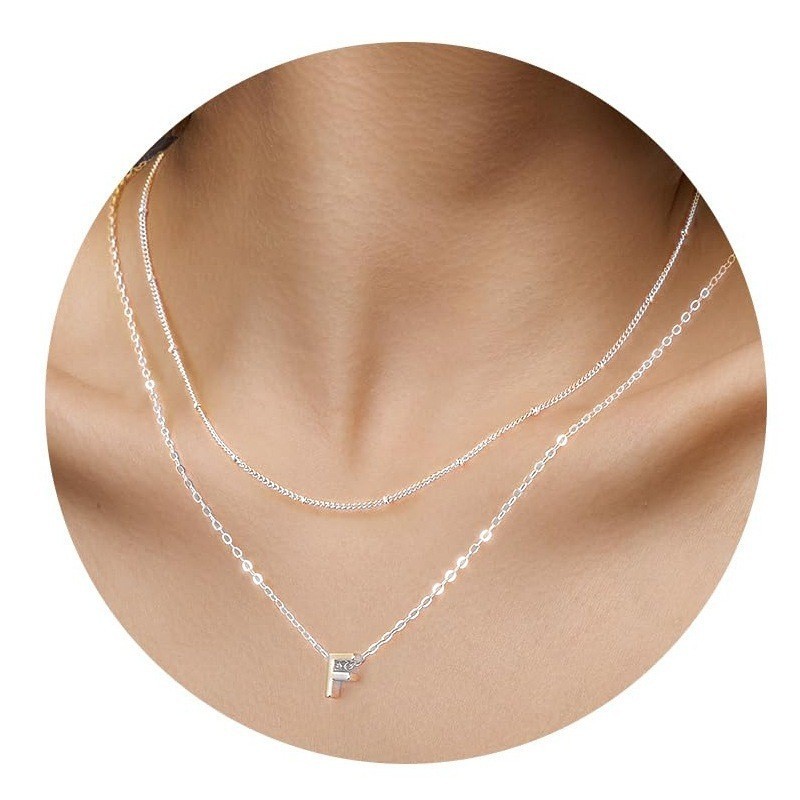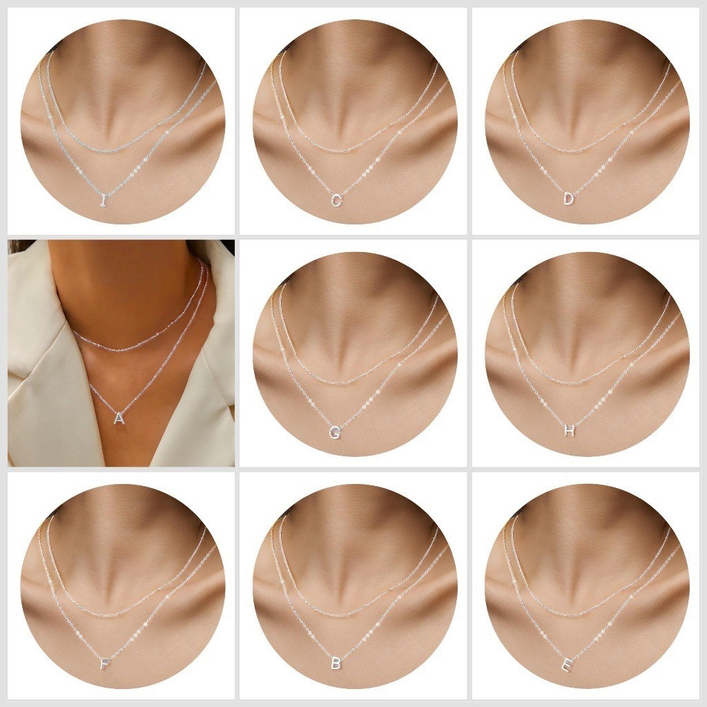Colar Choker Duplo Inoxidável Banhado A Prata 925 Com Pingente De Letras Inglesas
