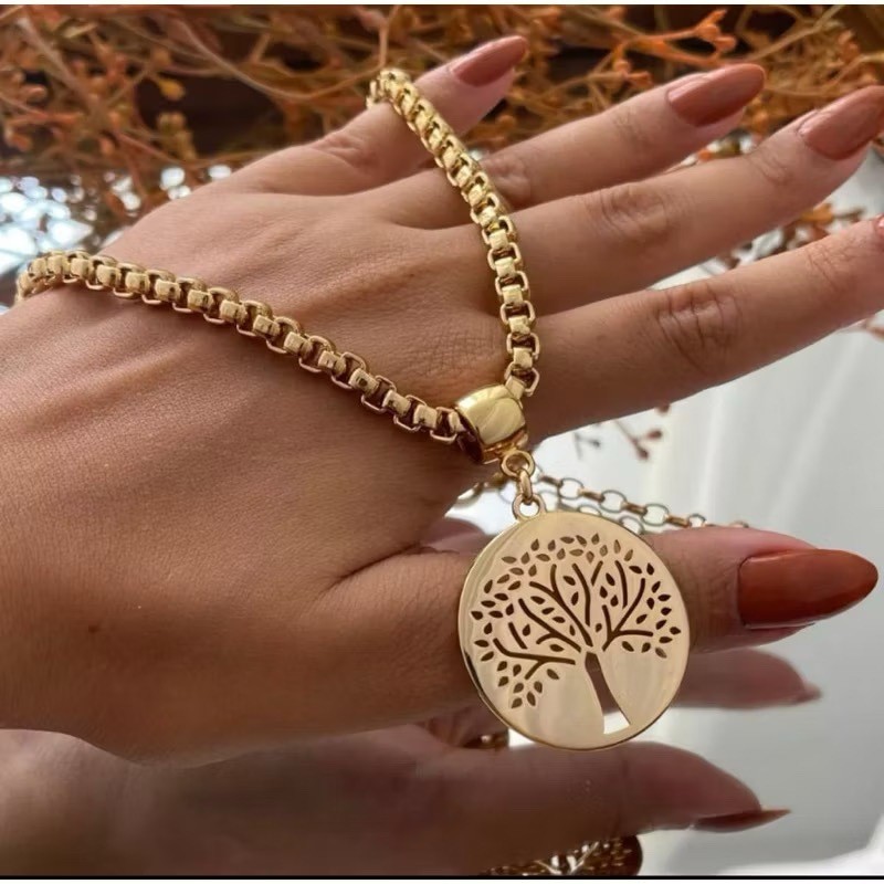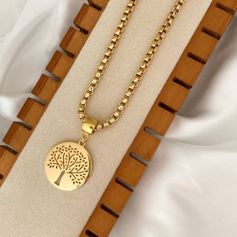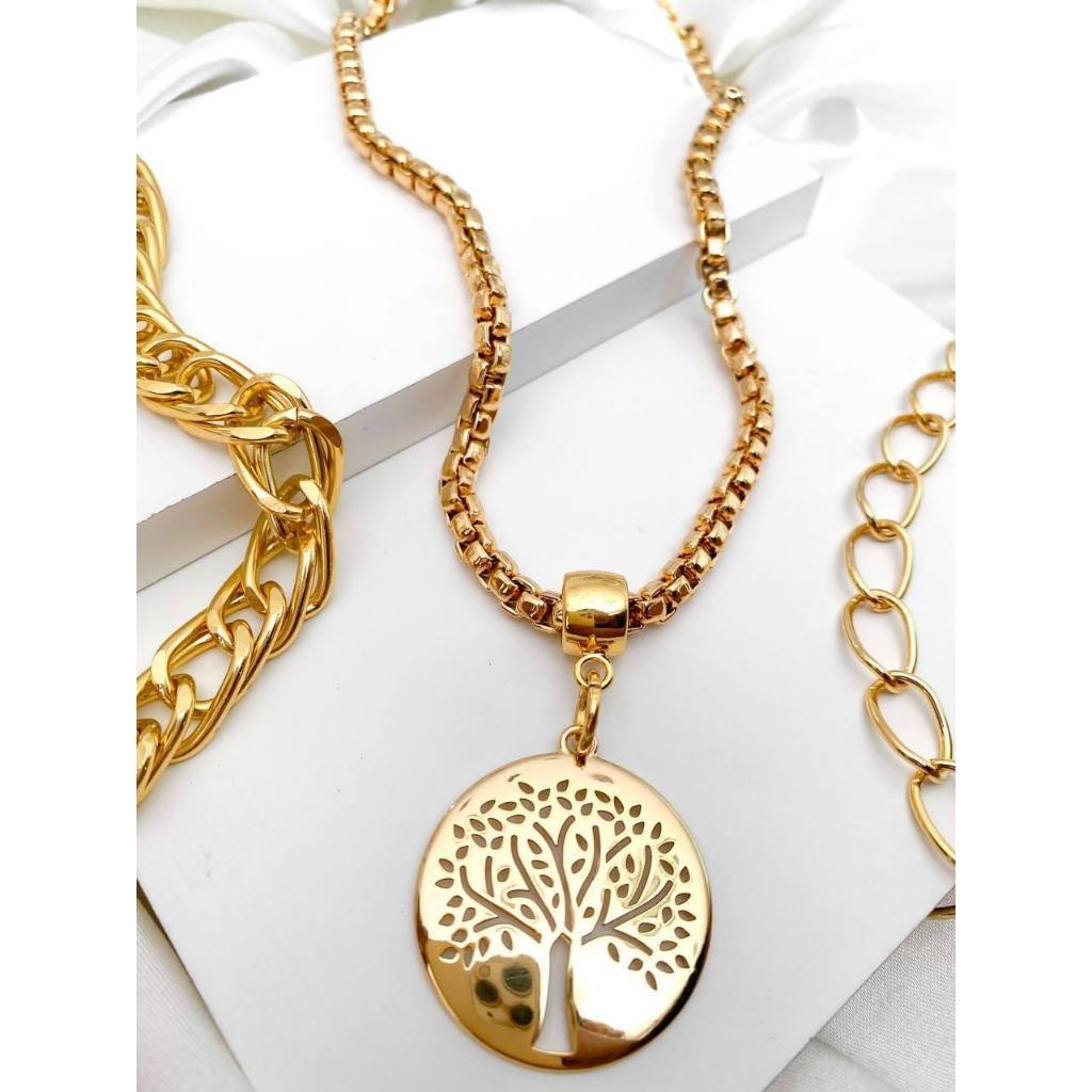 Colar Árvore da Vida Semijoia Banhada em Ouro 18K