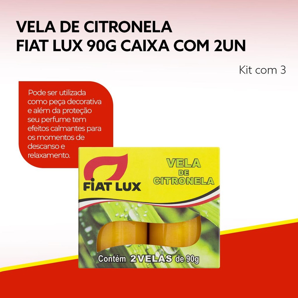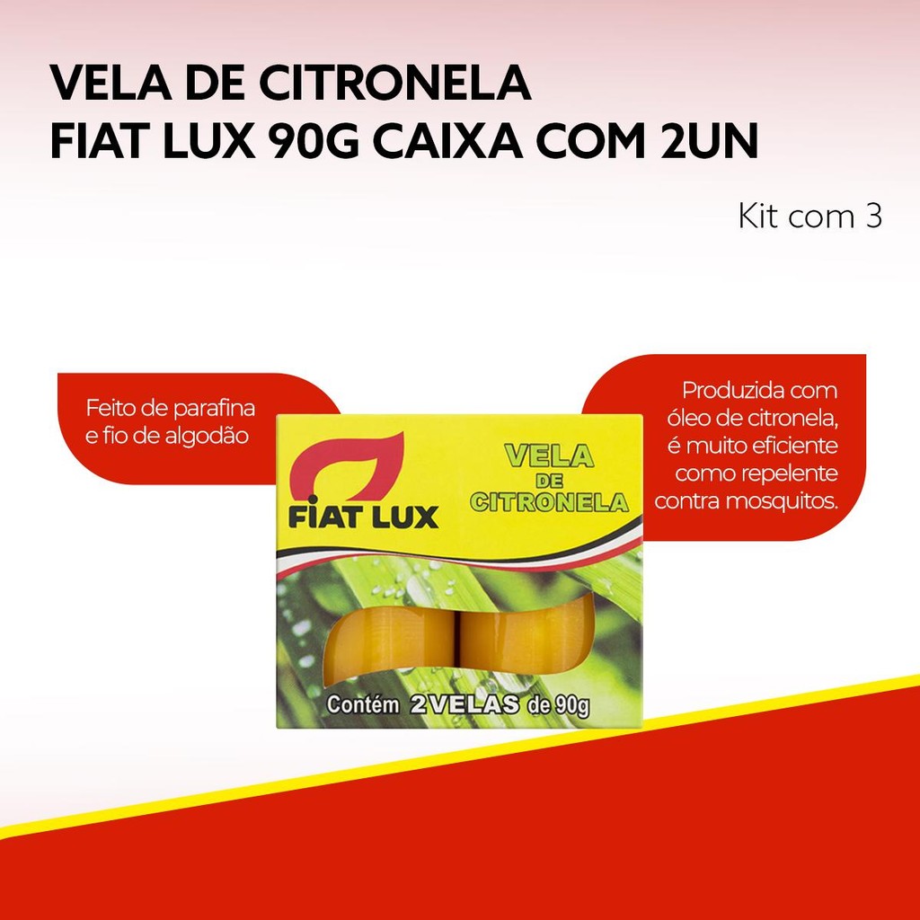 Vela de Citronela Fiat Lux 90g Repelente Natural de Mosquitos Caixa com 6 Unidades