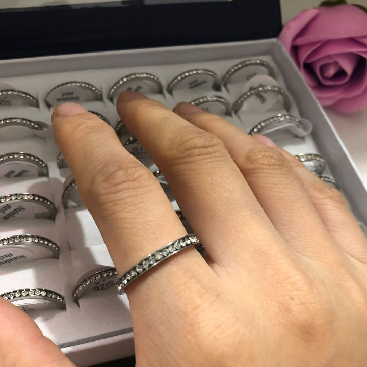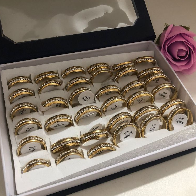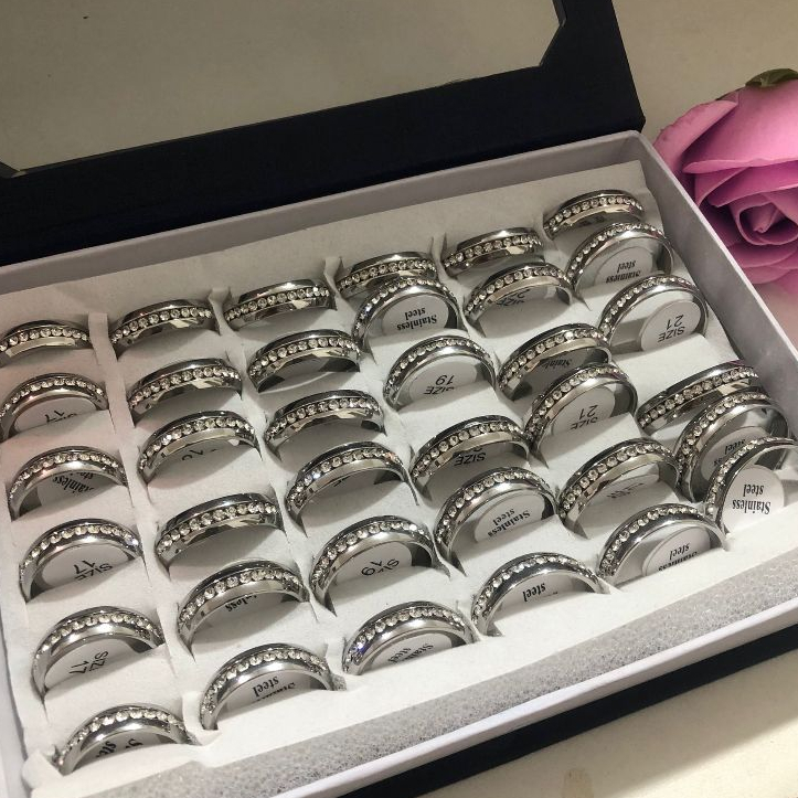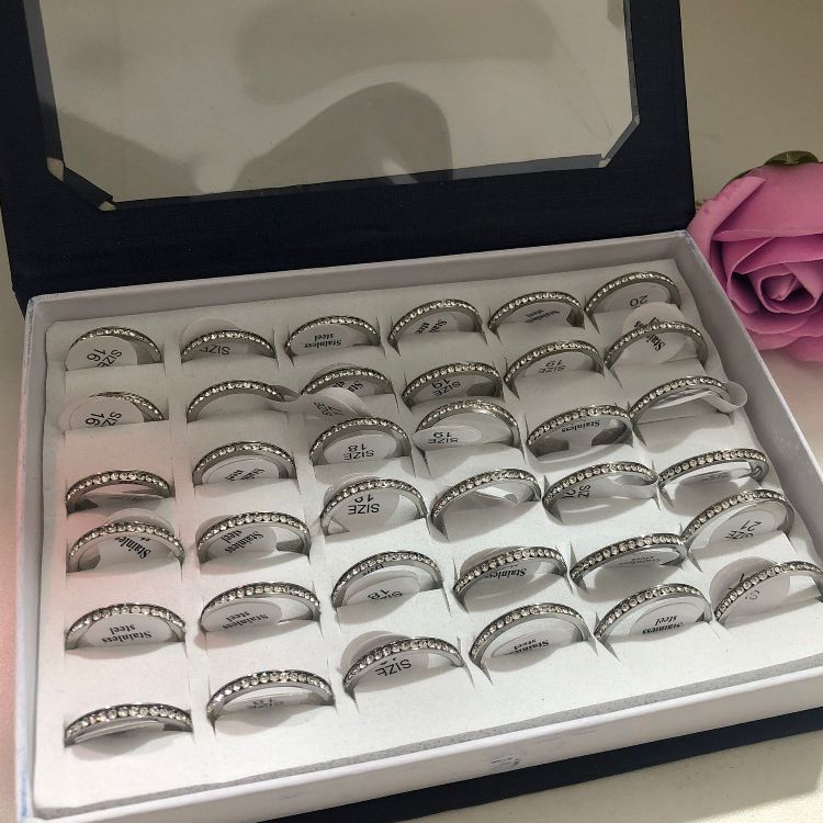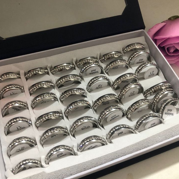 Kit 36 Unidades Anel em Aço inox prateado em strass /anel antialergico