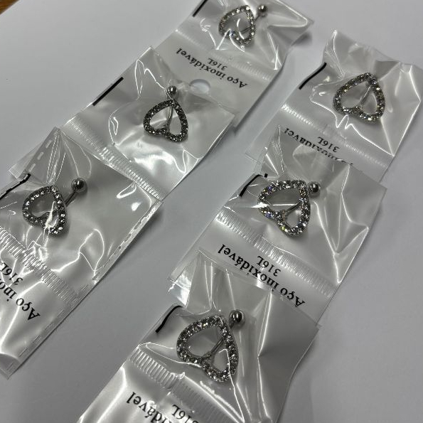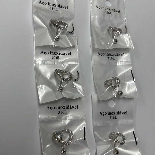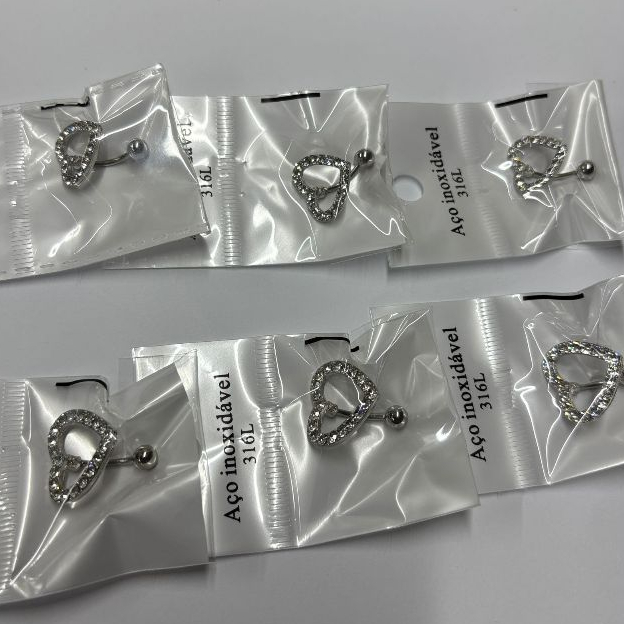 Kit 1 ate 12 Unidads Piercing de umbigo com decoração em coração de strass