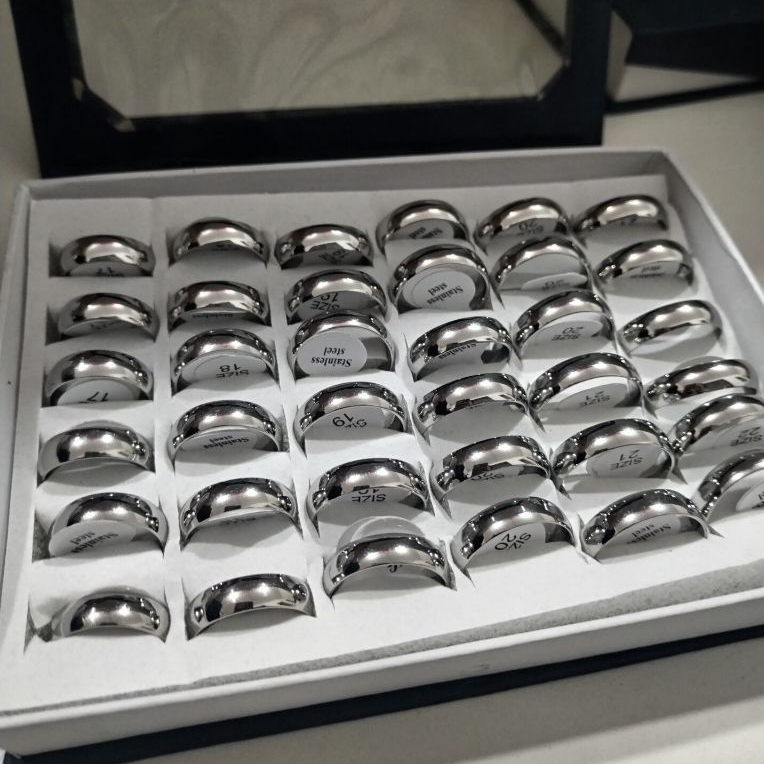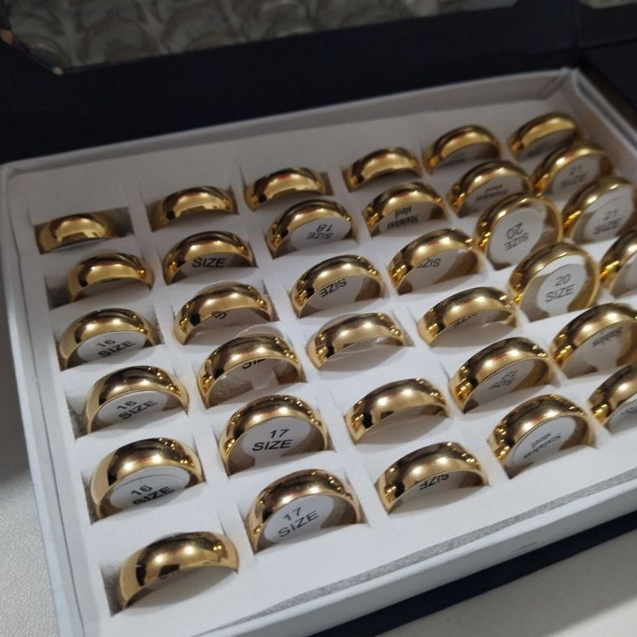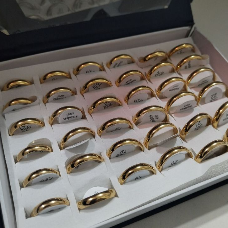 Kit 36 Unidades Aliança Anel Casamento Dourado/Prateado Aço Inox Preta 4-mm 6mm