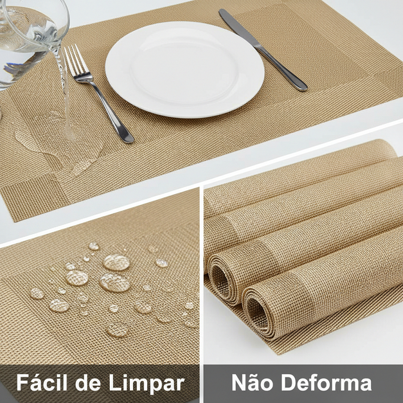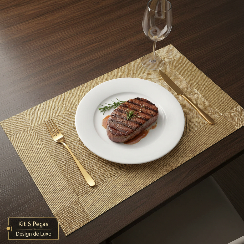 Kit 6 Jogo Americano PVC Metalizado Luxo Impermeável e Lavável para Mesa Posta