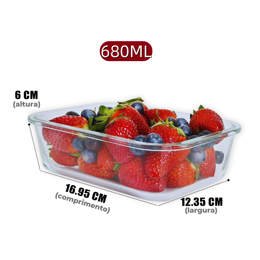 Belifou Kit 4/10 Potes Vidro Hermético 680ml Retangular 4 Travas Marmita Premium