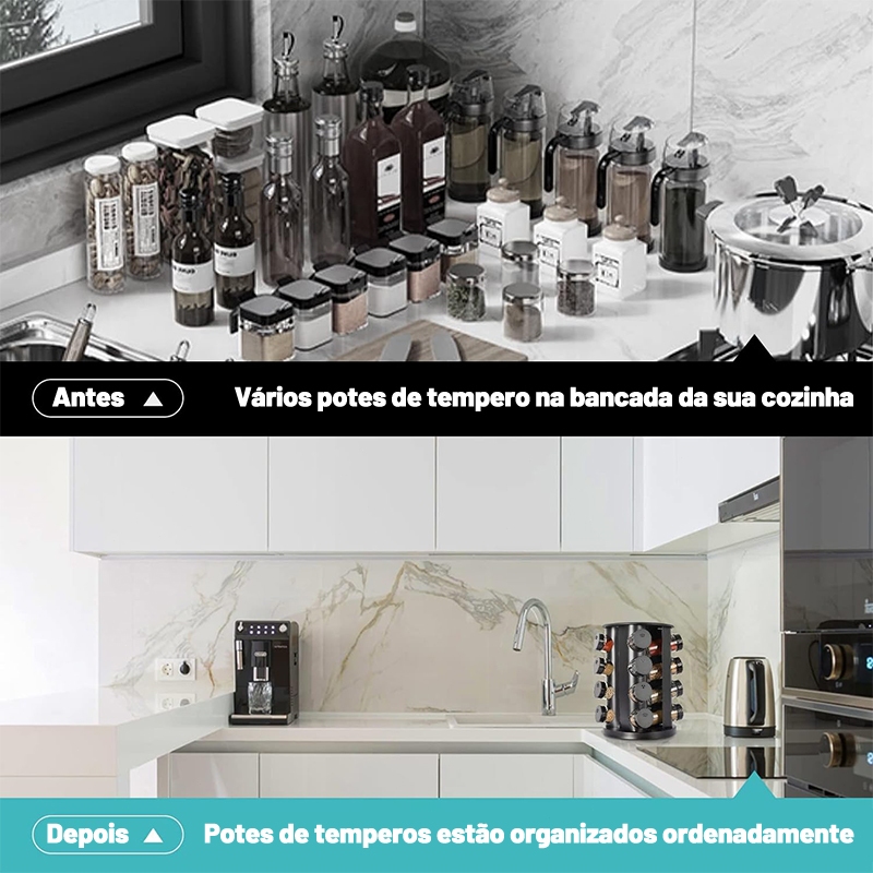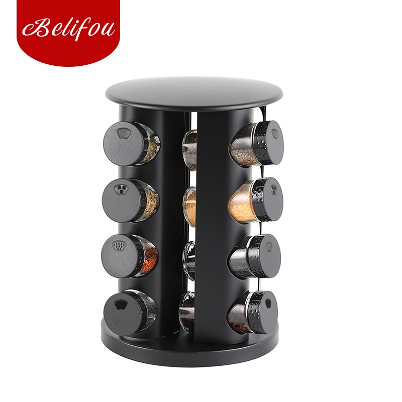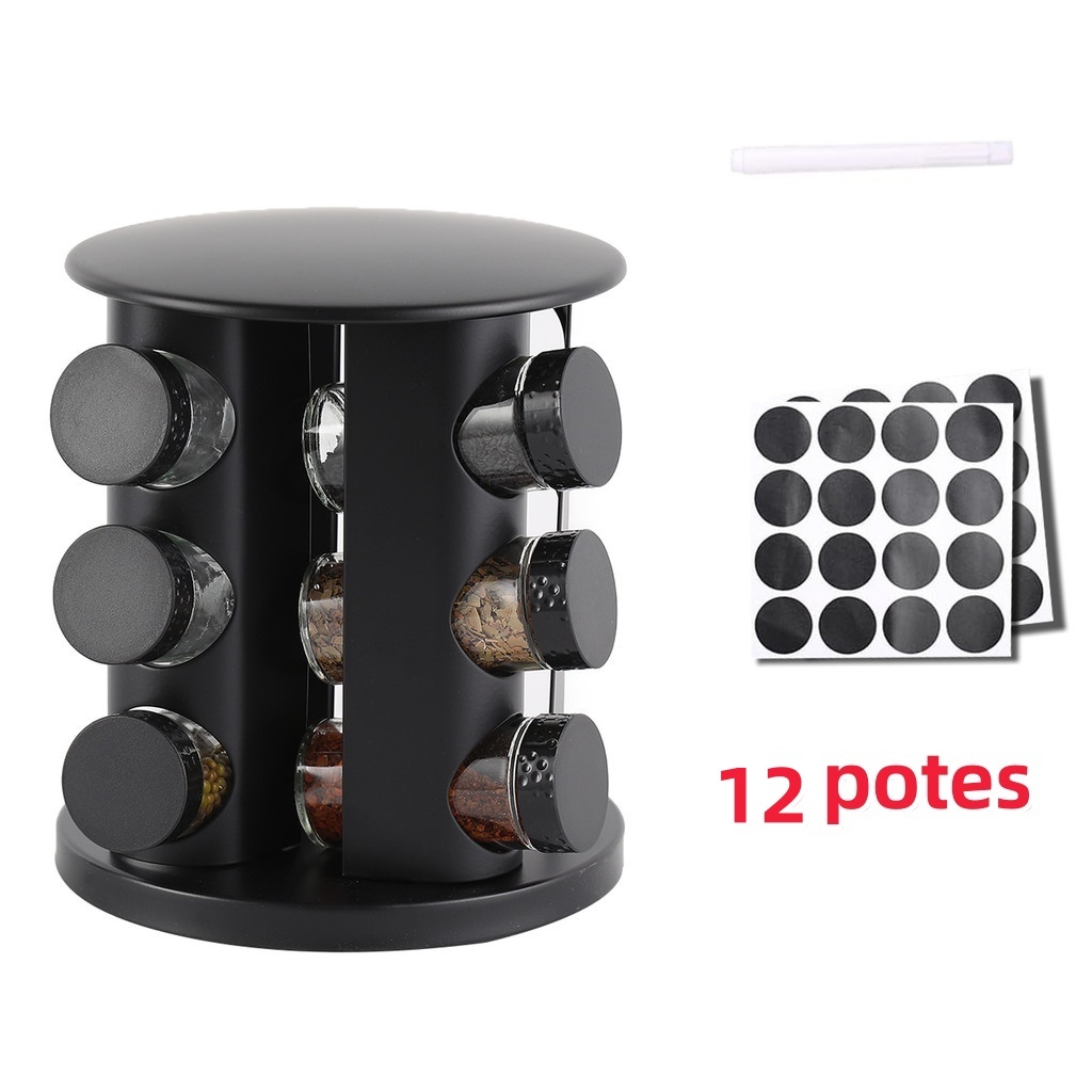 Belifou Porta Condimentos Giratório Tempero com 12 potes de Vidro 90G