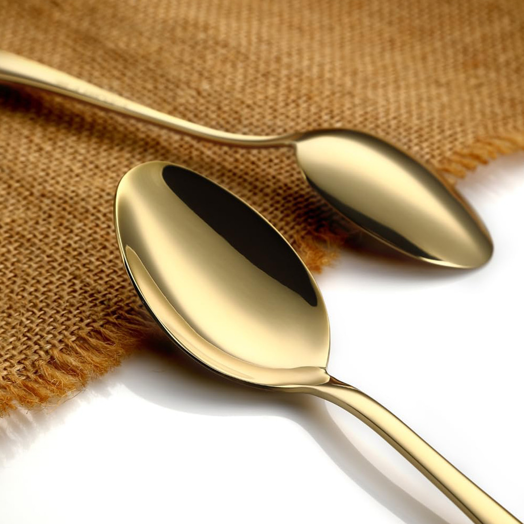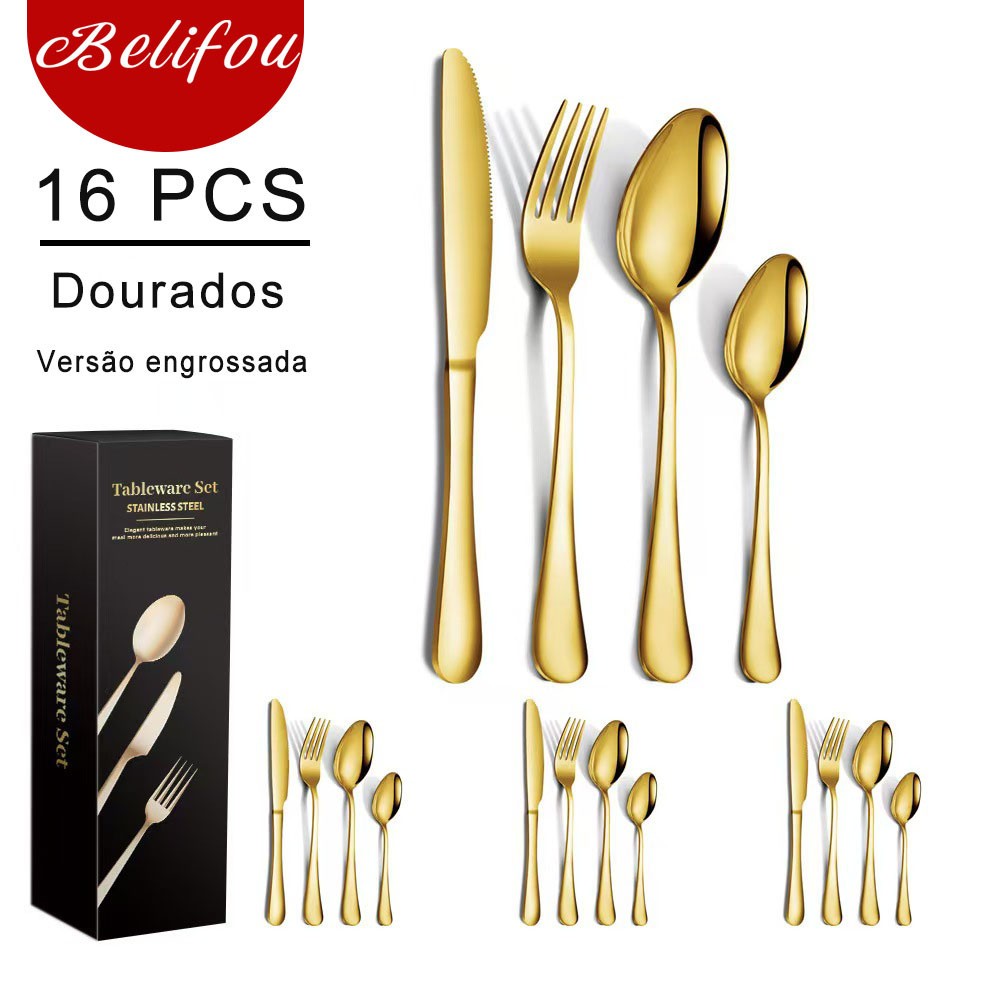 Belifou Kit 24 Jogo De Talheres Para Bife Aço Inoxidável 416 Dourados Com Colher Pequena