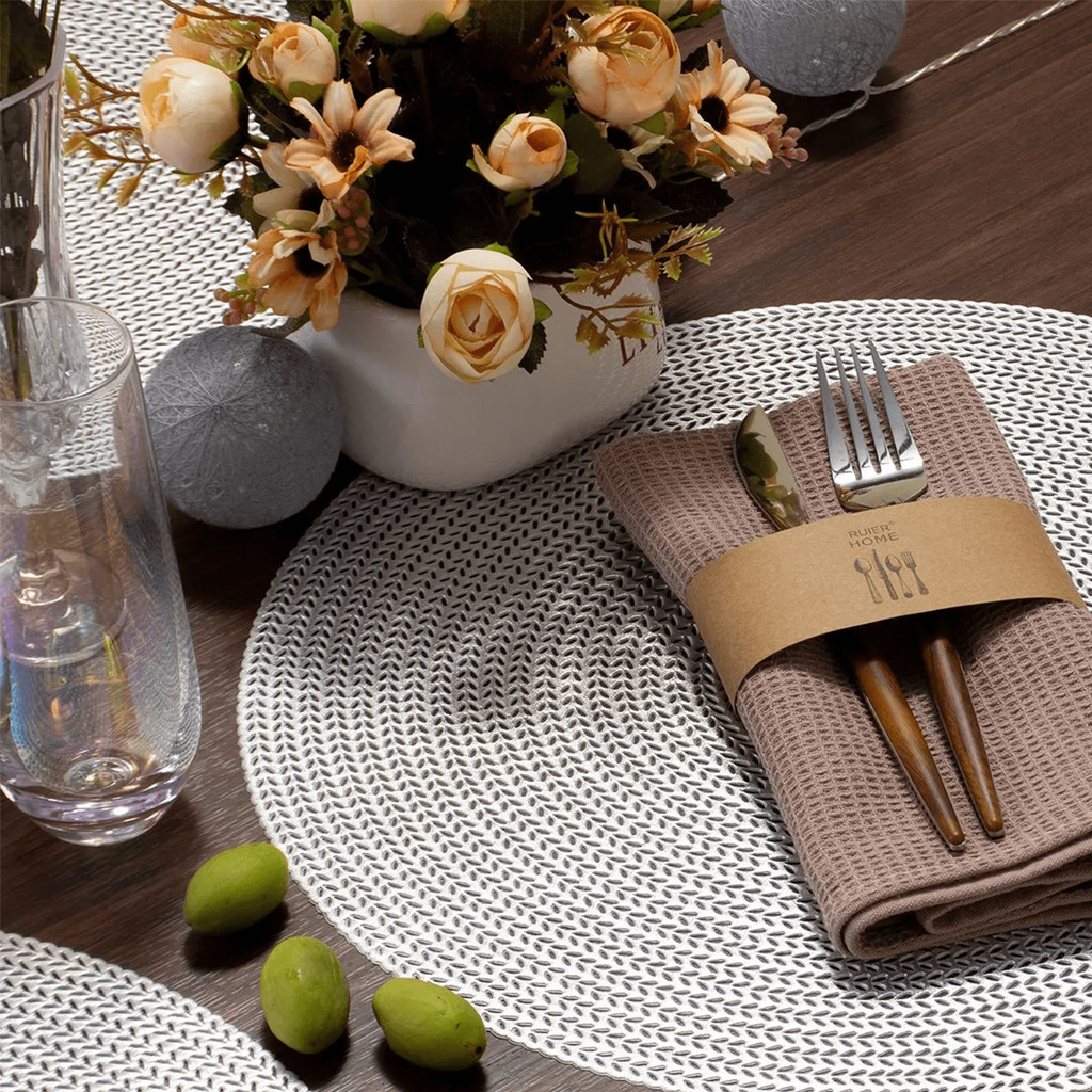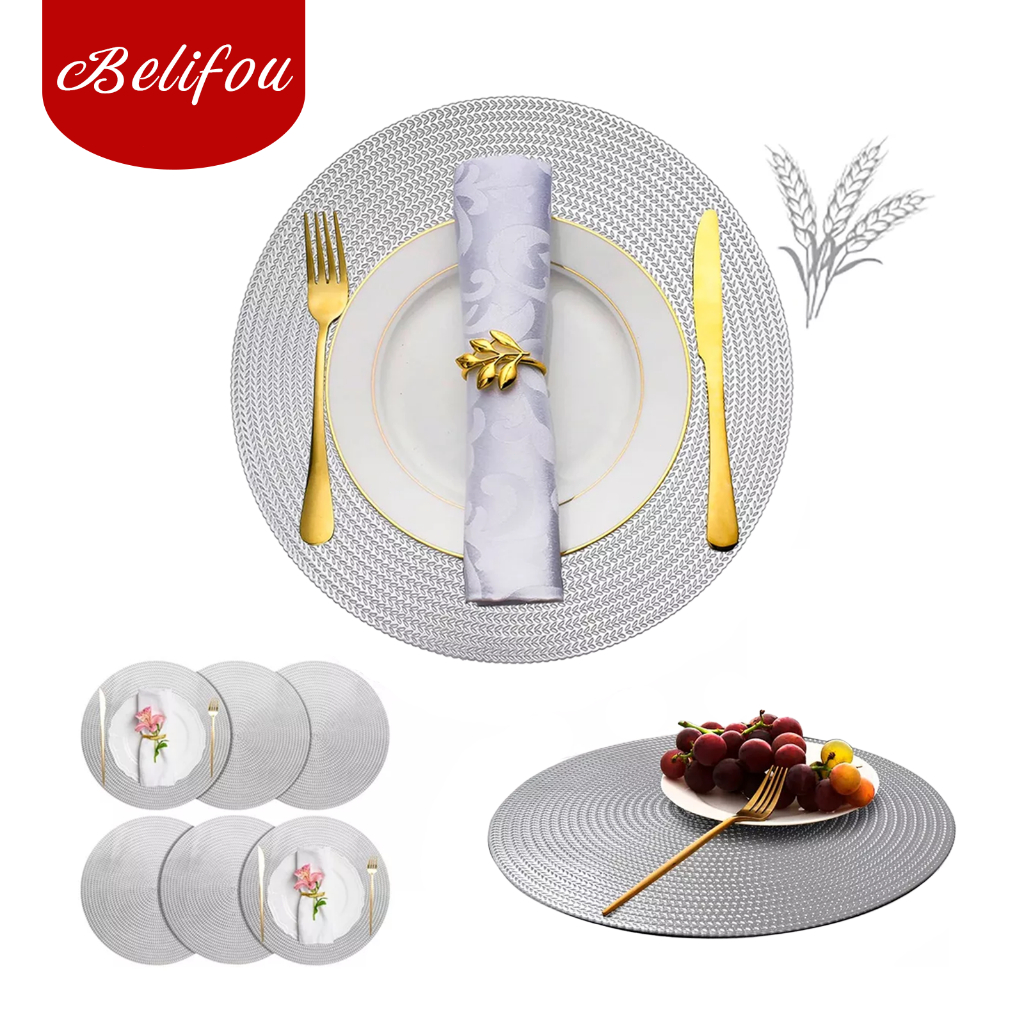 Belifou Kit 6 Individuais De Mesa Em PVC Mesa De Jantar Prata 38CM - Matio