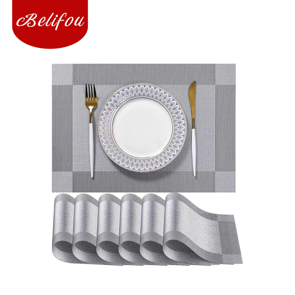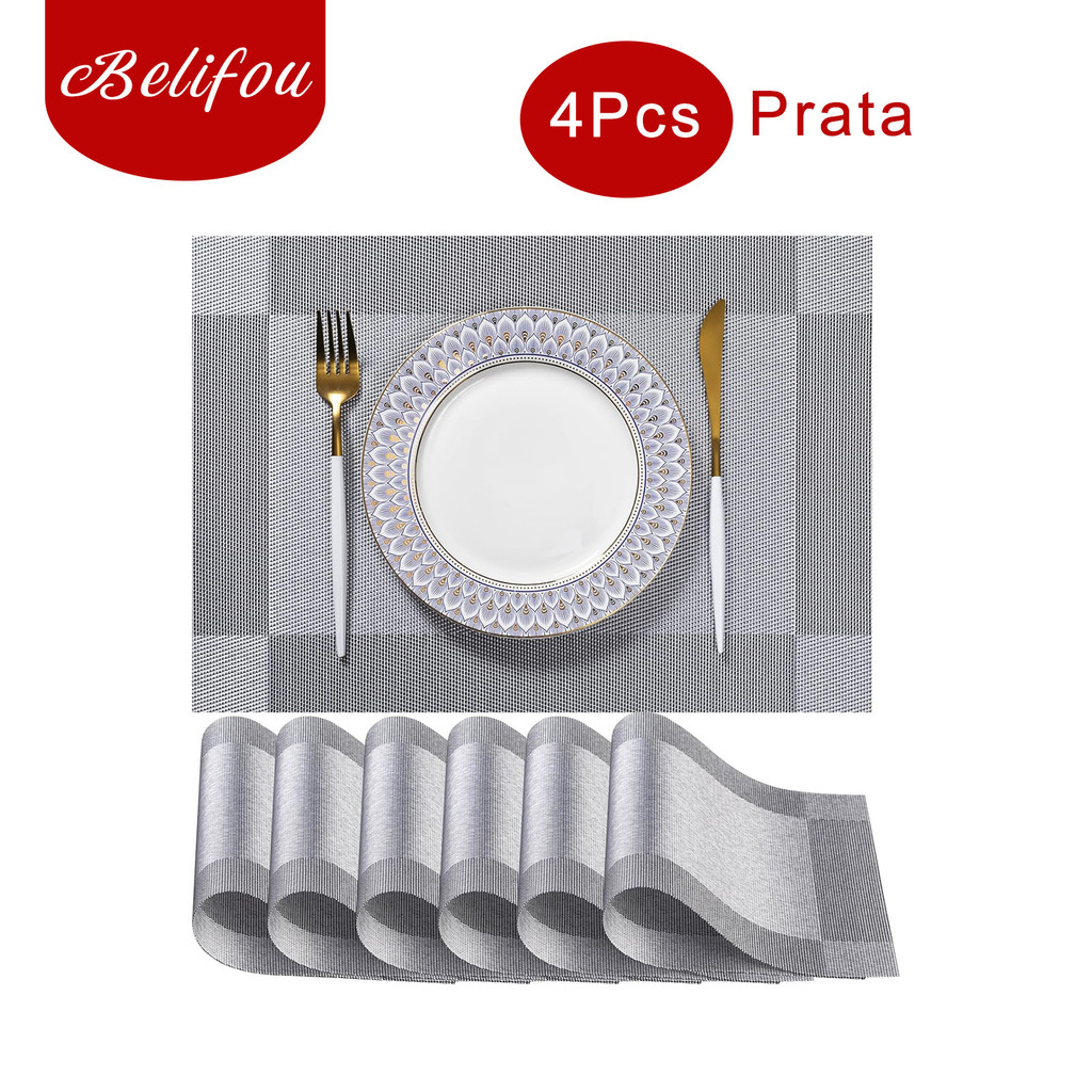 Belifou Kit 6 Mesa Jogos Americanos E Descanso PVC Retangular Prata - Matio Fácil De Lavar