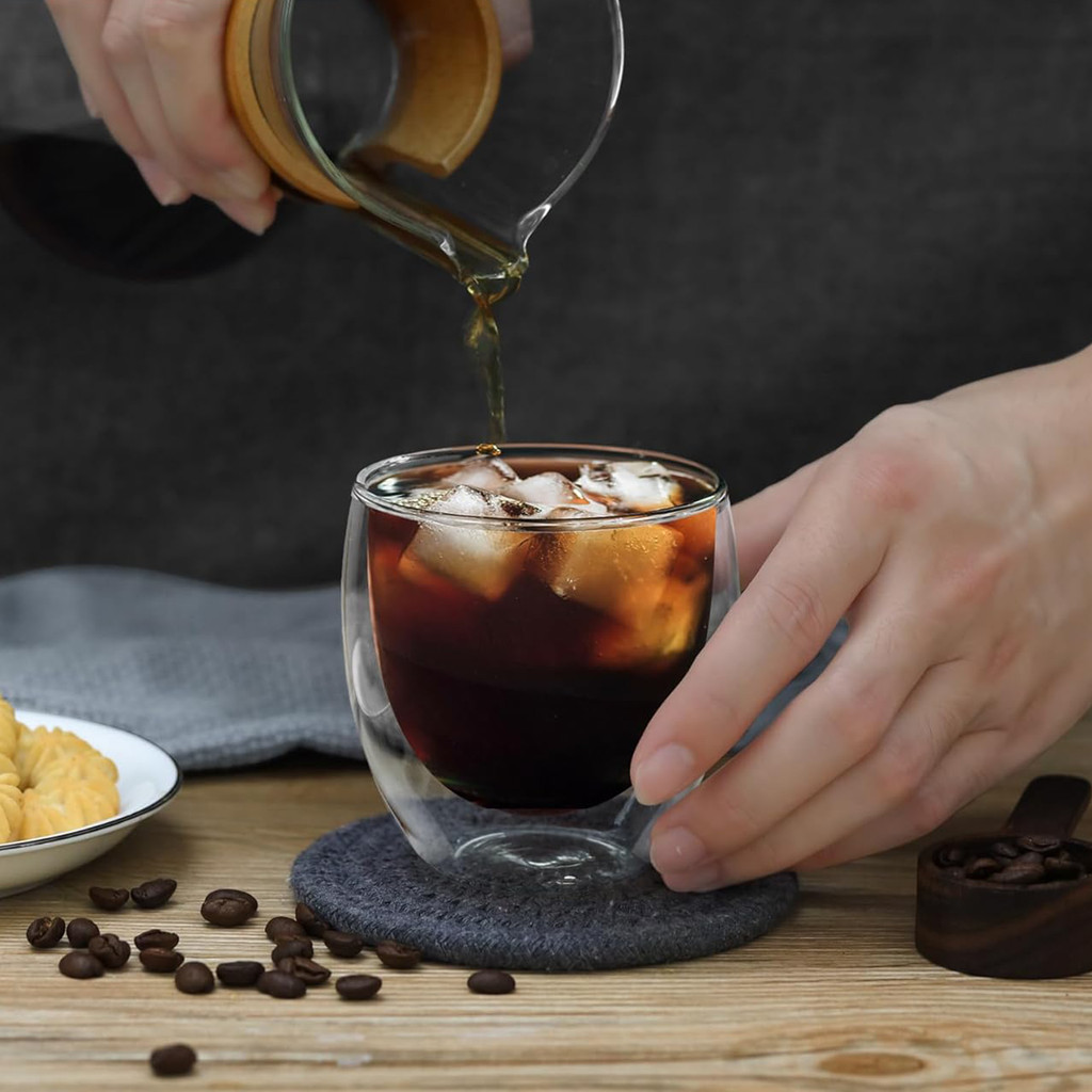 Belifou 6Pcs Vidro Caneca De Café Dupla Isolamento Térmico 80ML