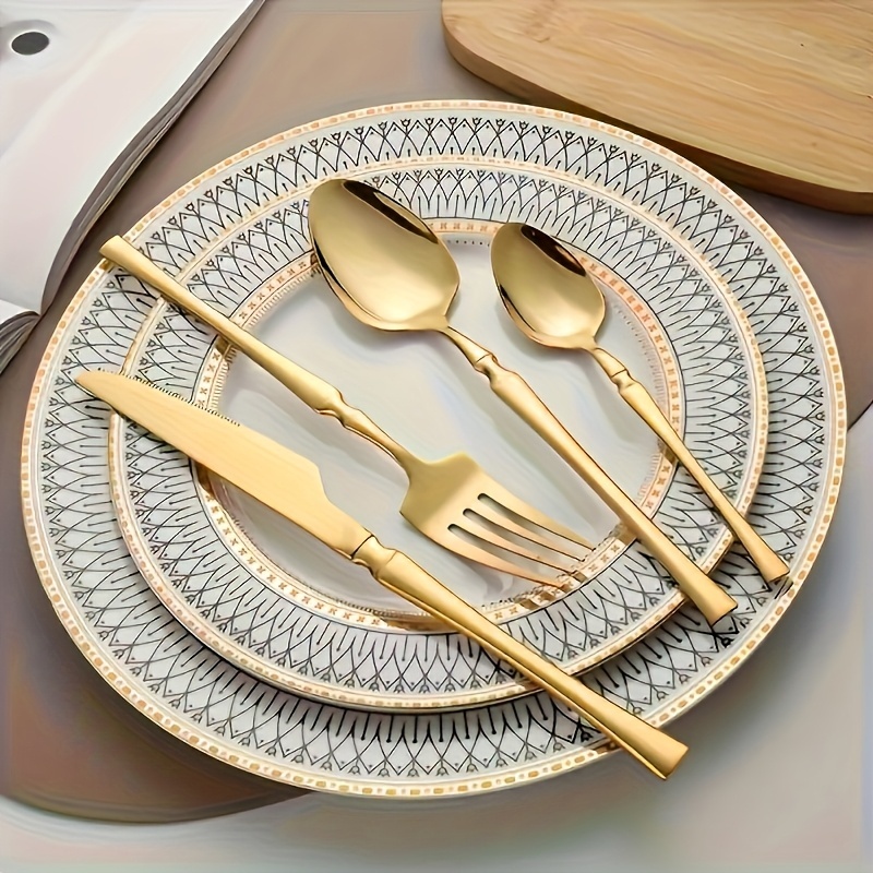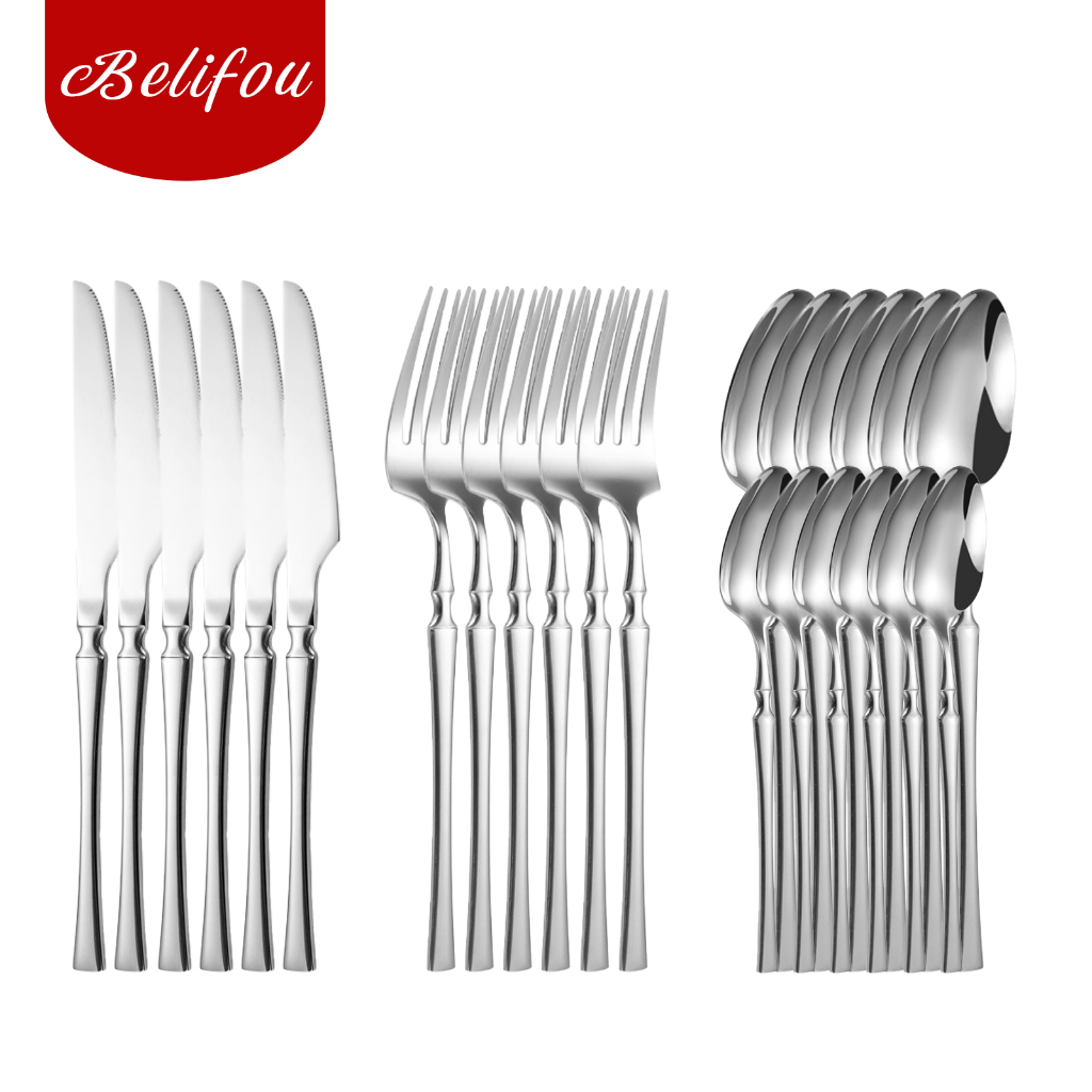 Belifou Kit 24 Jogo De Talheres Aço Inoxidável 416 Cintura Fina Dourado