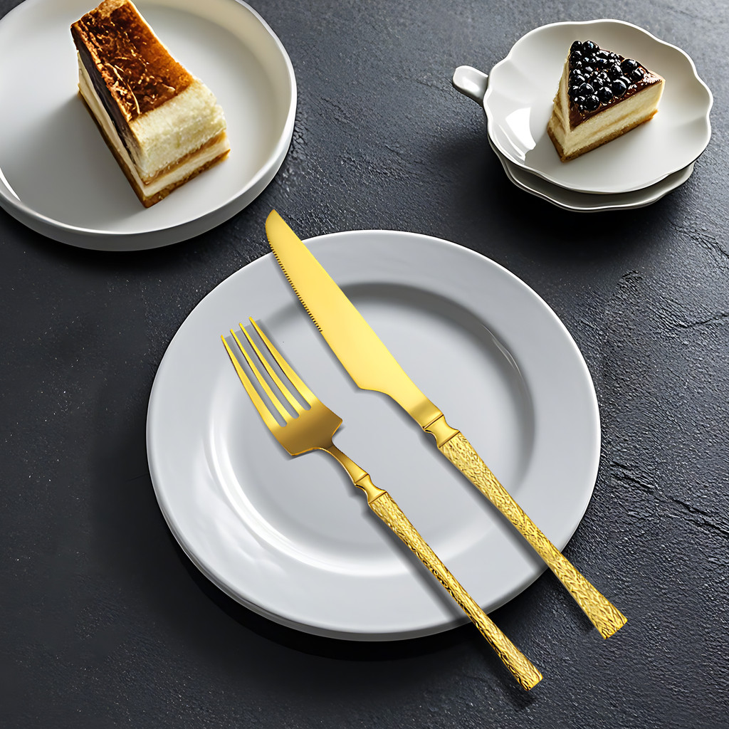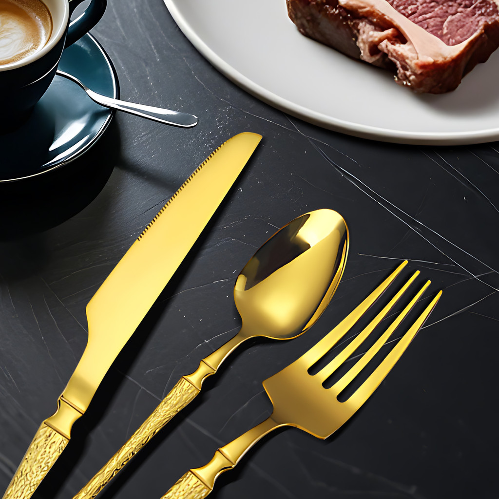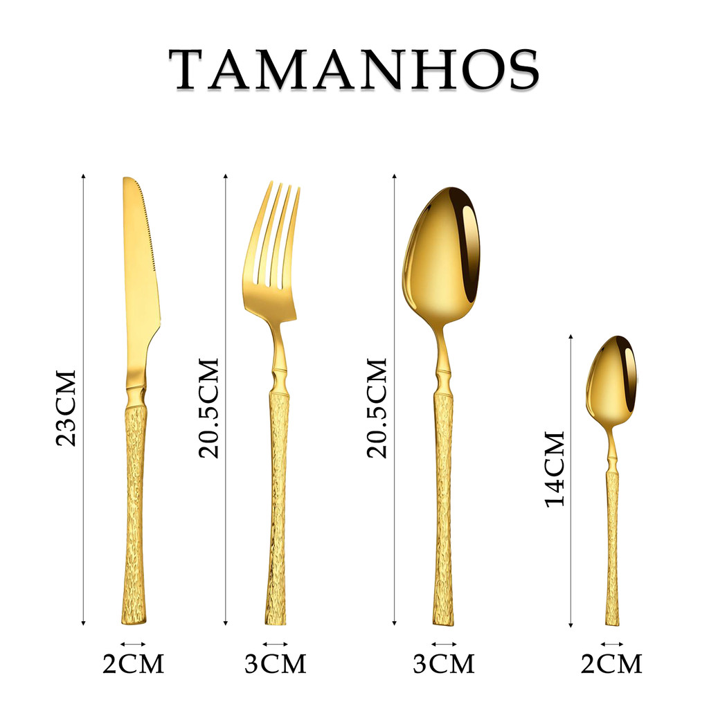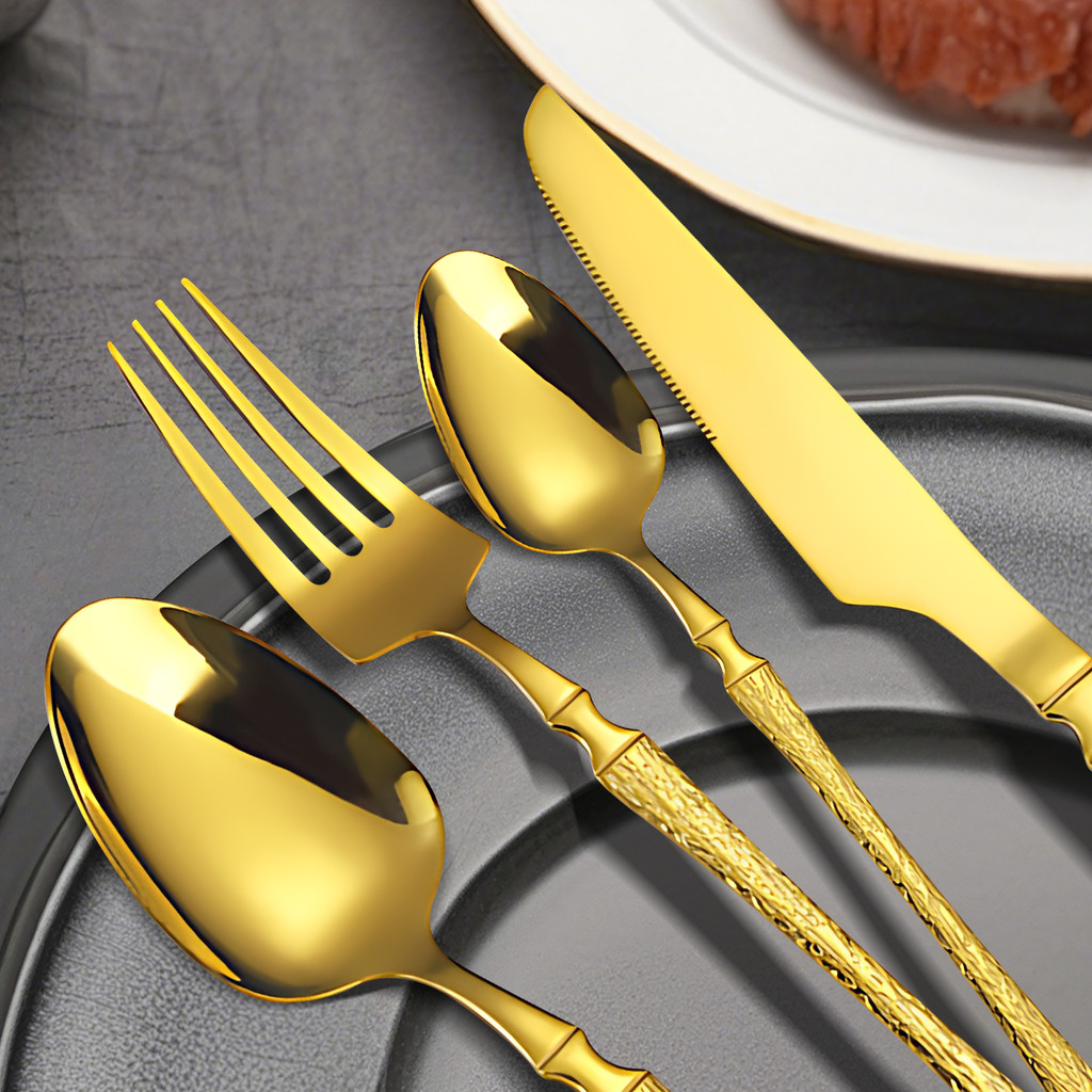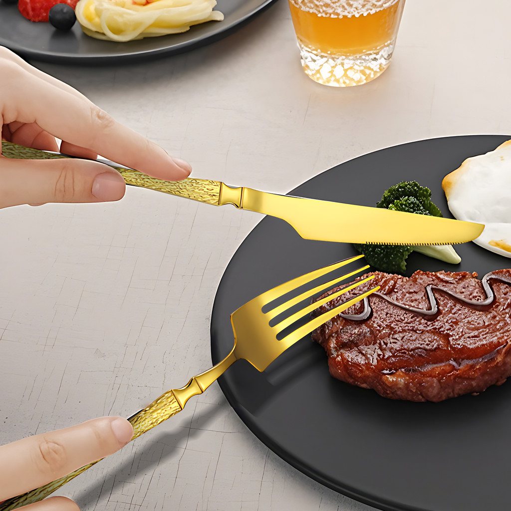 Belifou Kit 24 Jogo De Talheres Aço Inoxidável 416 Cintura Fina Textura Dourado - Vesta